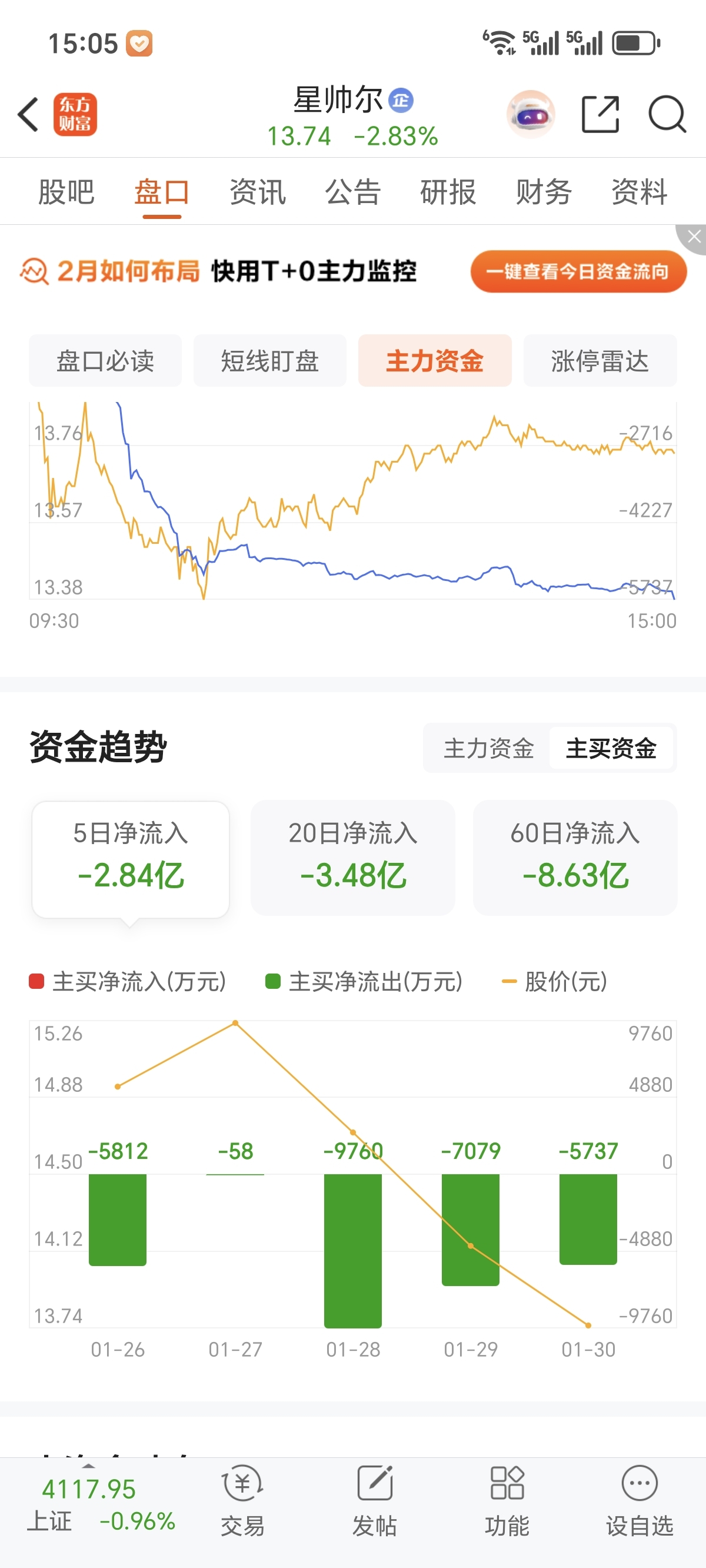 $星帅尔(SZ002860)$ 韭菜们挣不到钱的命,资金大幅流出,就像一个人天天流血,怎么活?