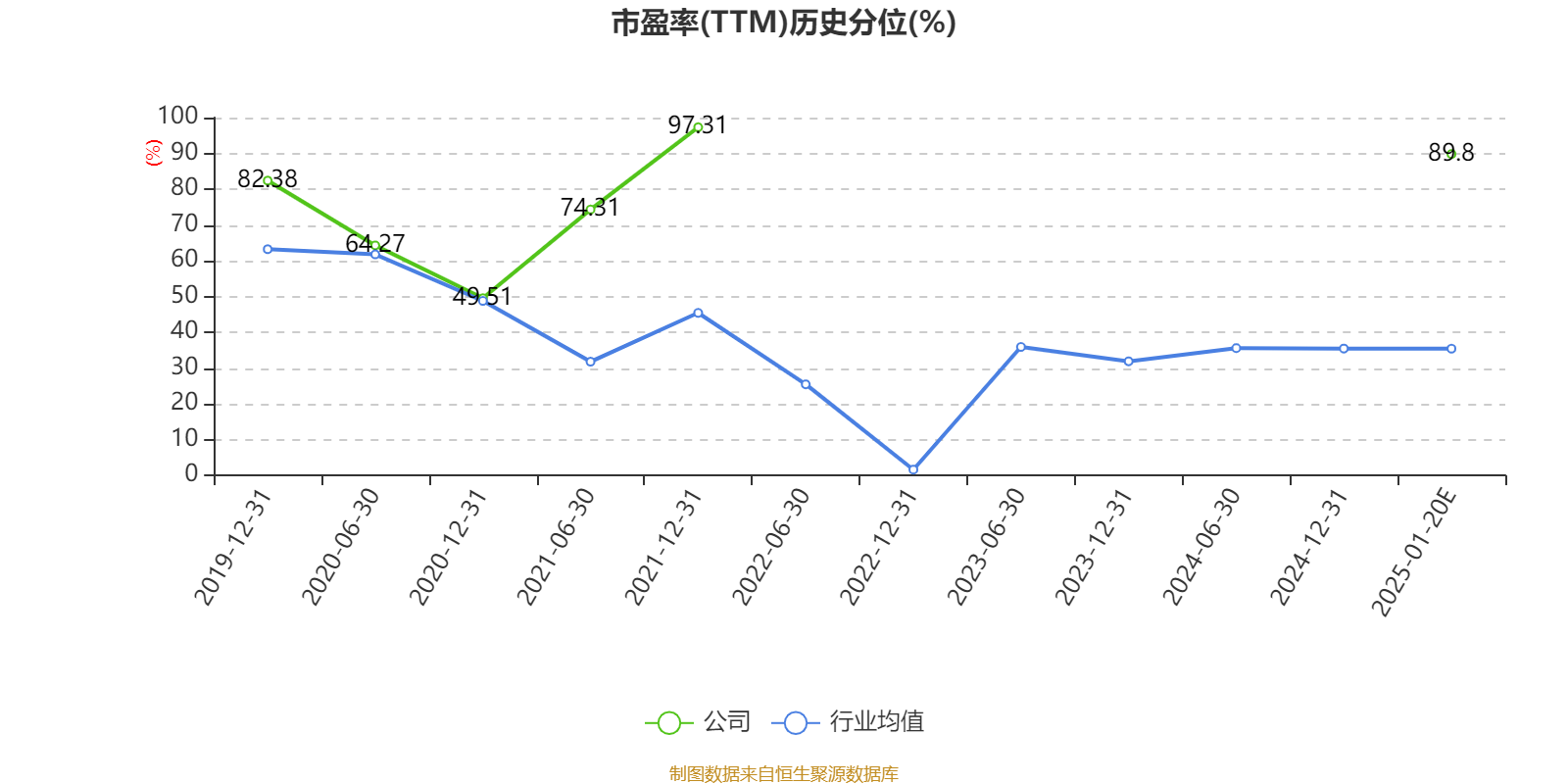 以本次披露业绩预告均值计算,公司近年市盈率(TTM)图如下所示: