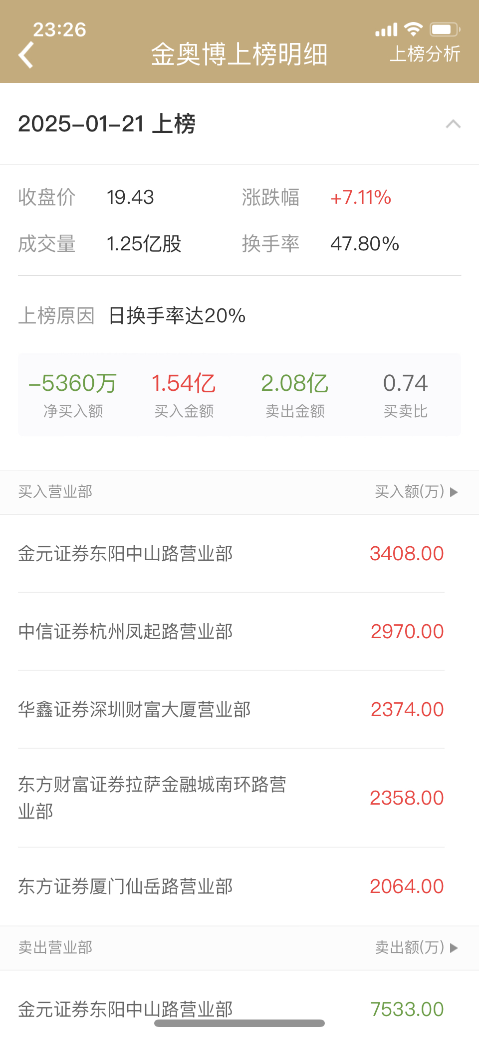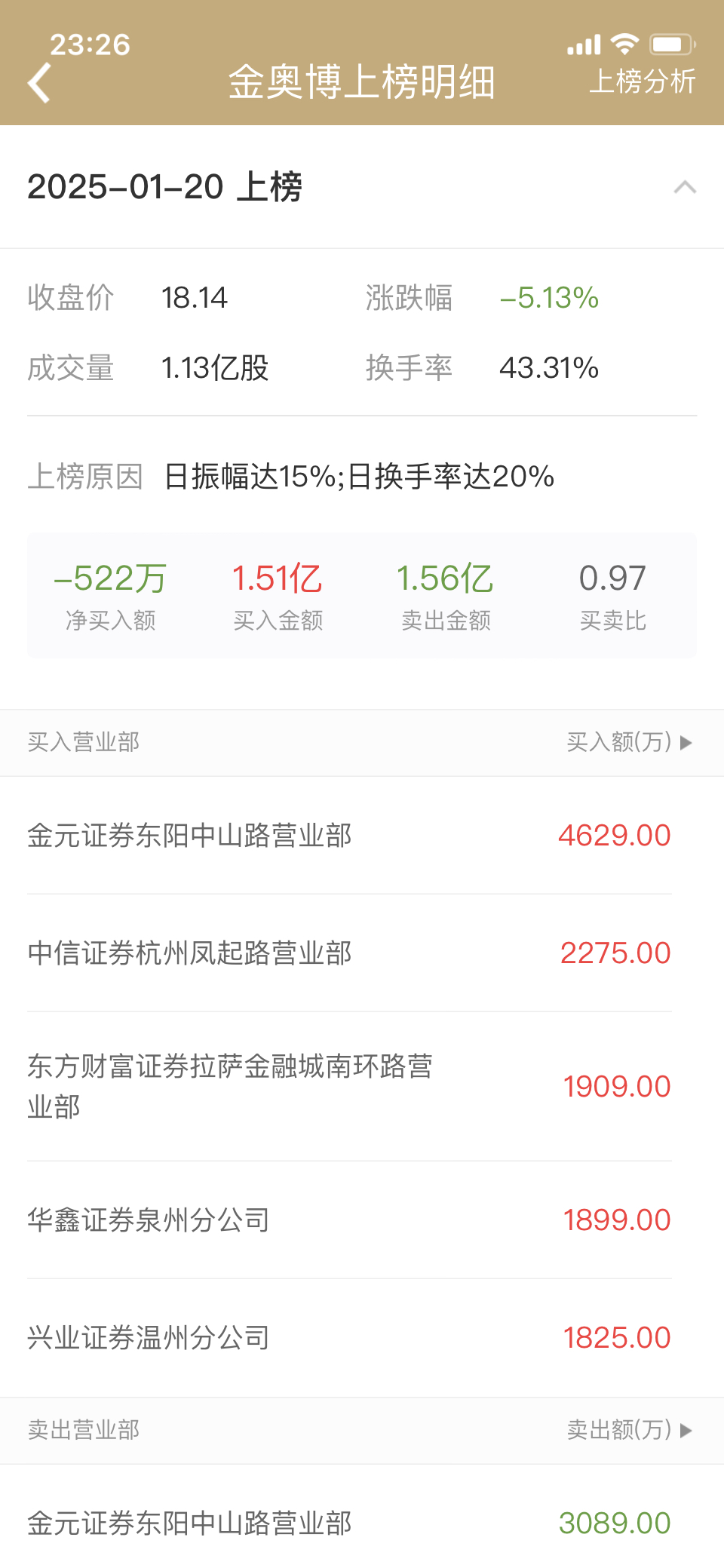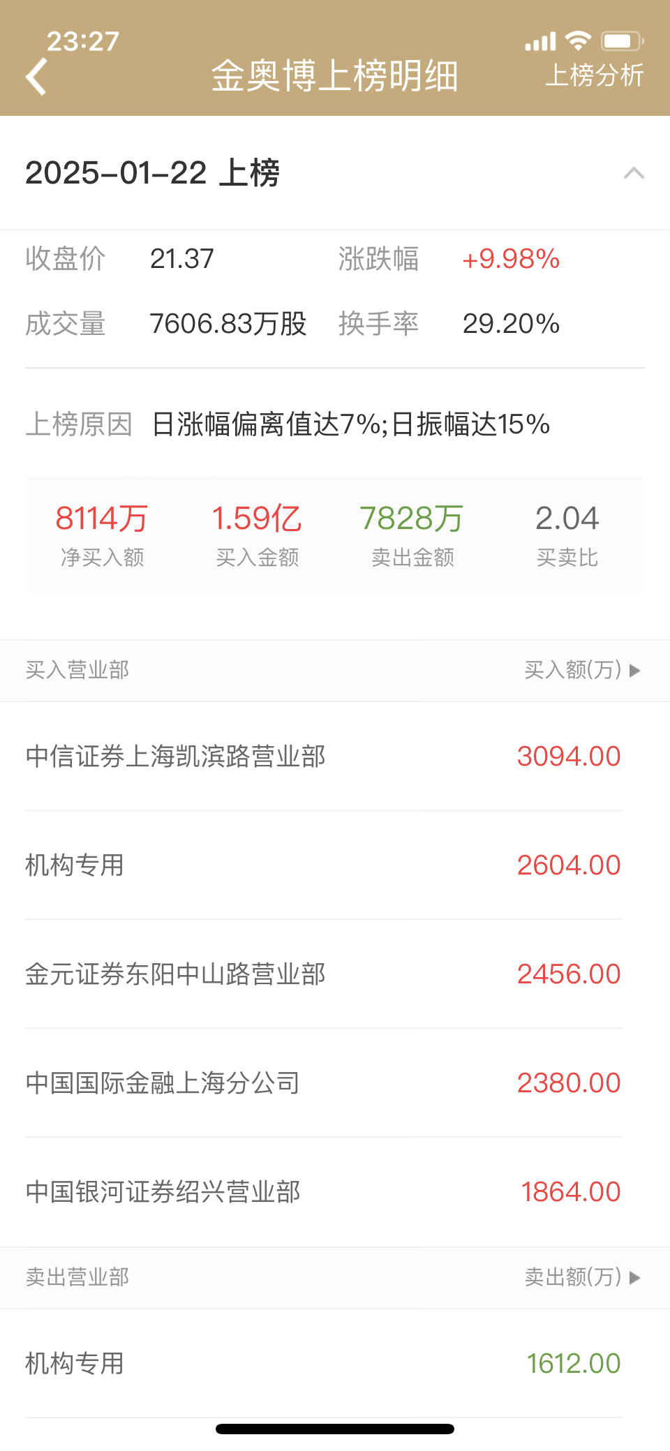 $瀛通通讯(SZ002861)$ 买一金元东阳,买二中信凤起,这两货喜欢深水低吸妖股,而且第二天必反包,不一定涨停,但一定大涨。看看这俩货1月20日深水捞金奥博结果第二天第三天大涨就知道了。所以明天瀛通必反包,拭目以待!