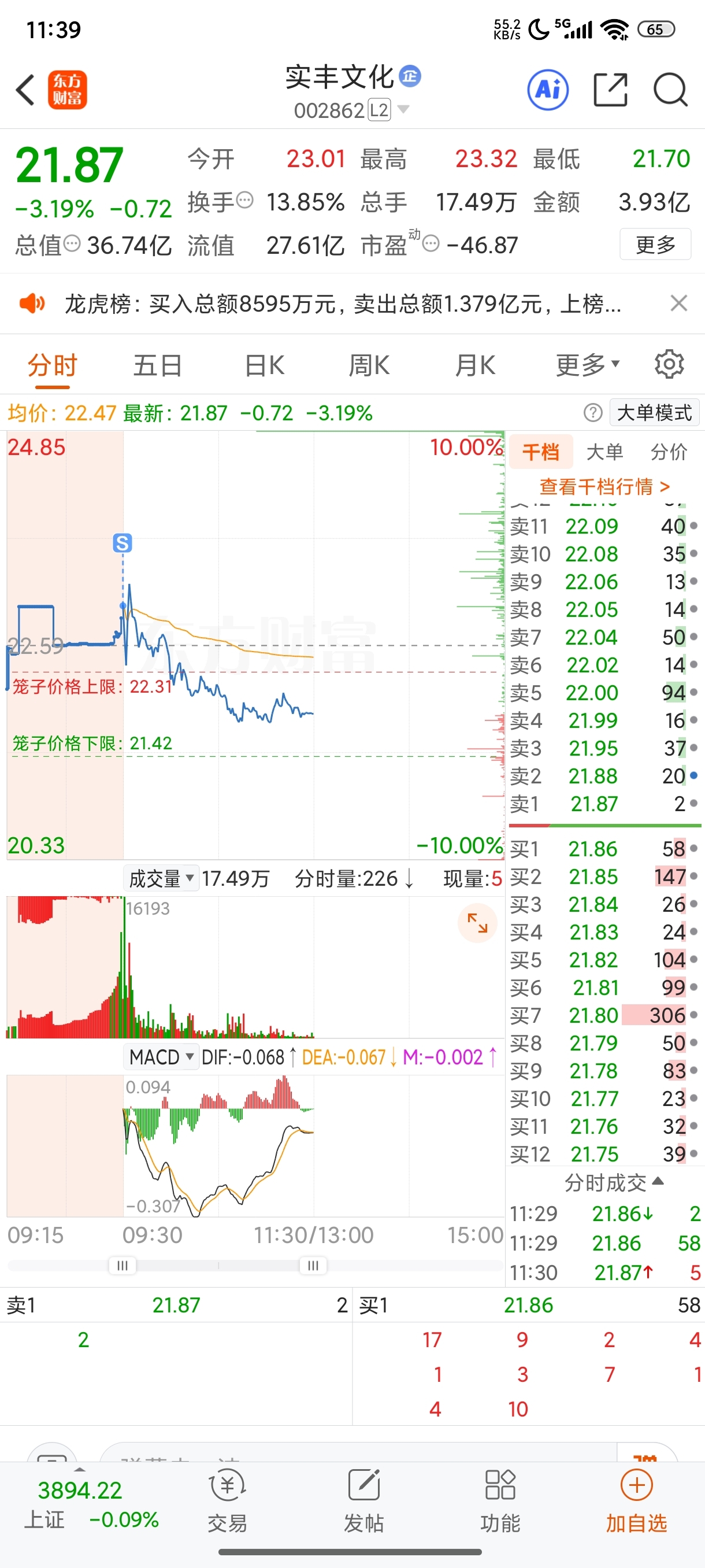 $实丰文化(SZ002862)$ 竞价就挂跌停跑了,主力你冲。