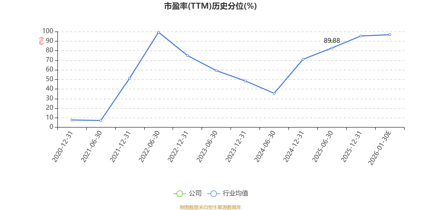 以本次披露业绩预告均值计算,公司近年市盈率(TTM)图如下所示: