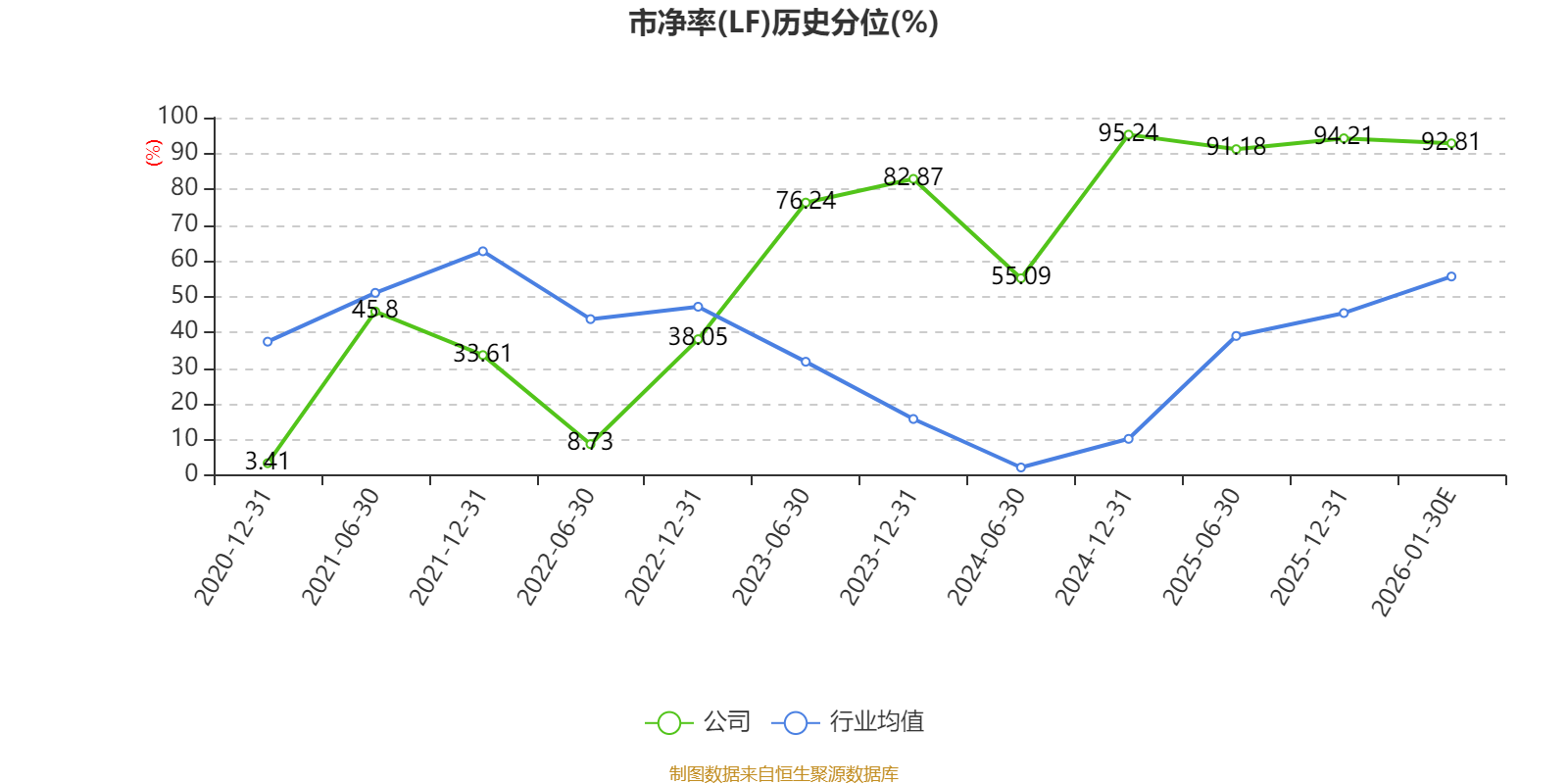 市盈率、市净率为负时,不显示当期分位数,会导致折线图中断。