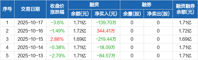 今飞凯达:融资净偿还139.7万元,融资余额1.71亿元(10-17)