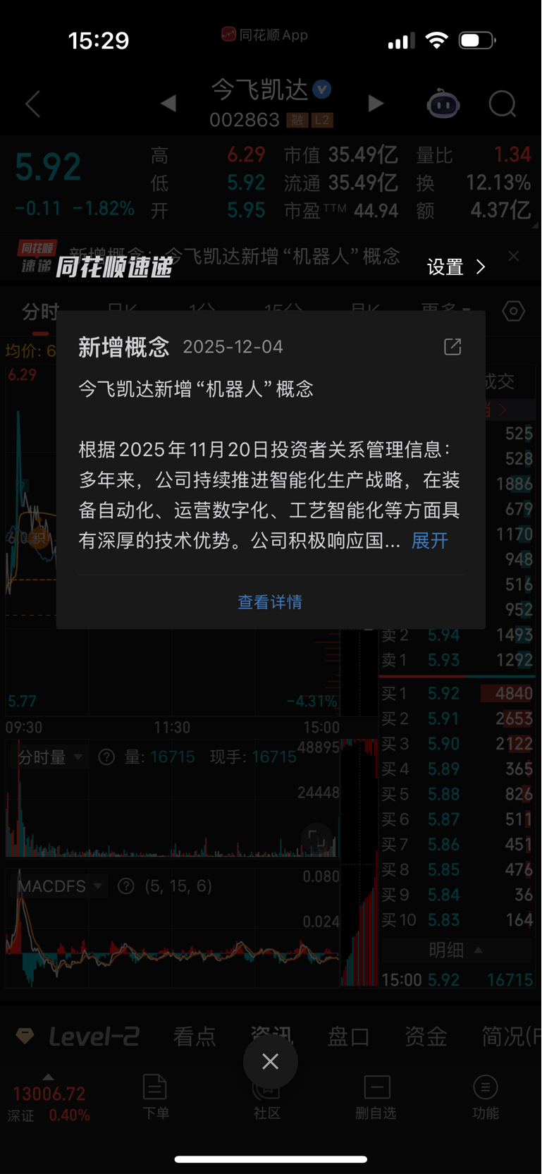 $今飞凯达(SZ002863)$ 刚刚又加了个机器人概念!是不是割飞了