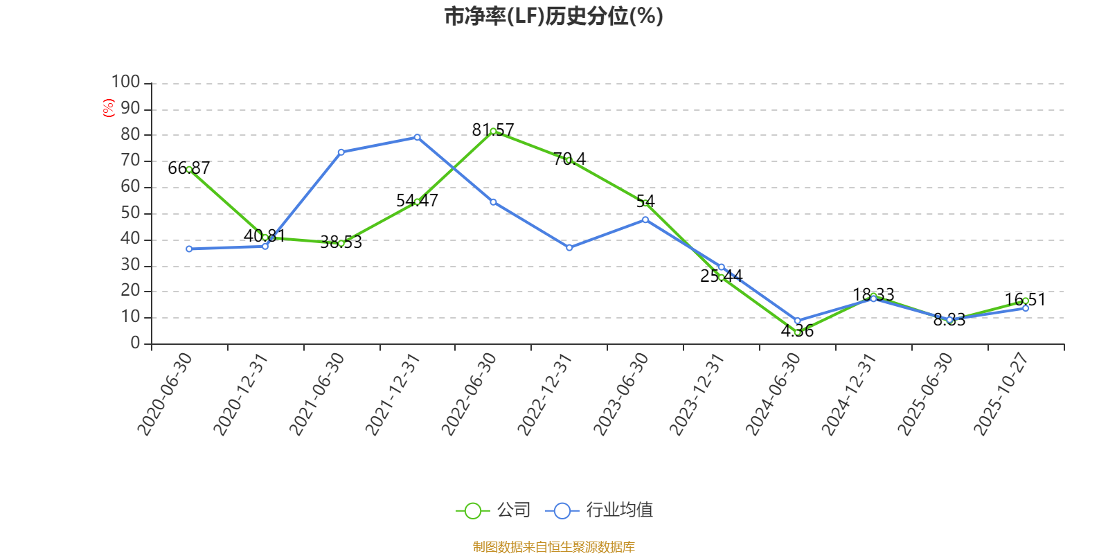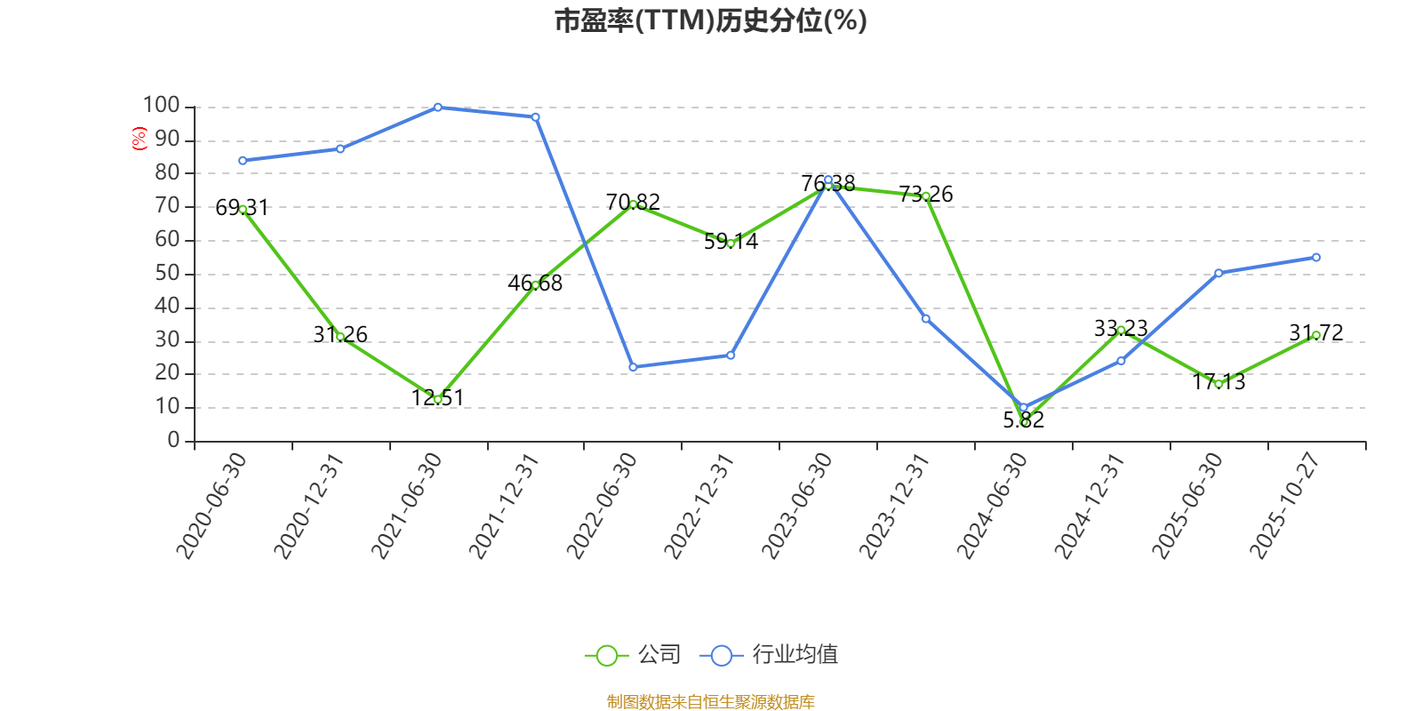 市盈率、市净率为负时,不显示当期分位数,会导致折线图中断。