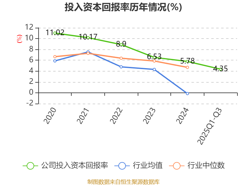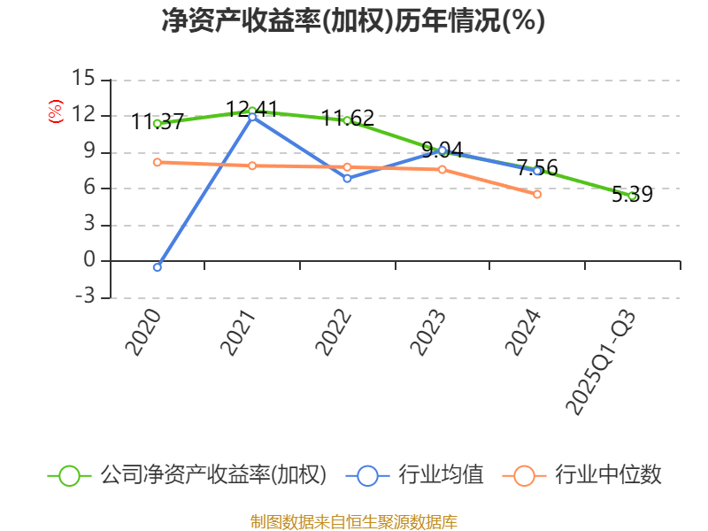 盈利能力方面, 2025年前三季度公司加权平均净资产收益率为5.39%,同比下降0.27个百分点。公司2025年前三季度投入资本回报率为4.35%,较上年同期上升0.05个百分点。