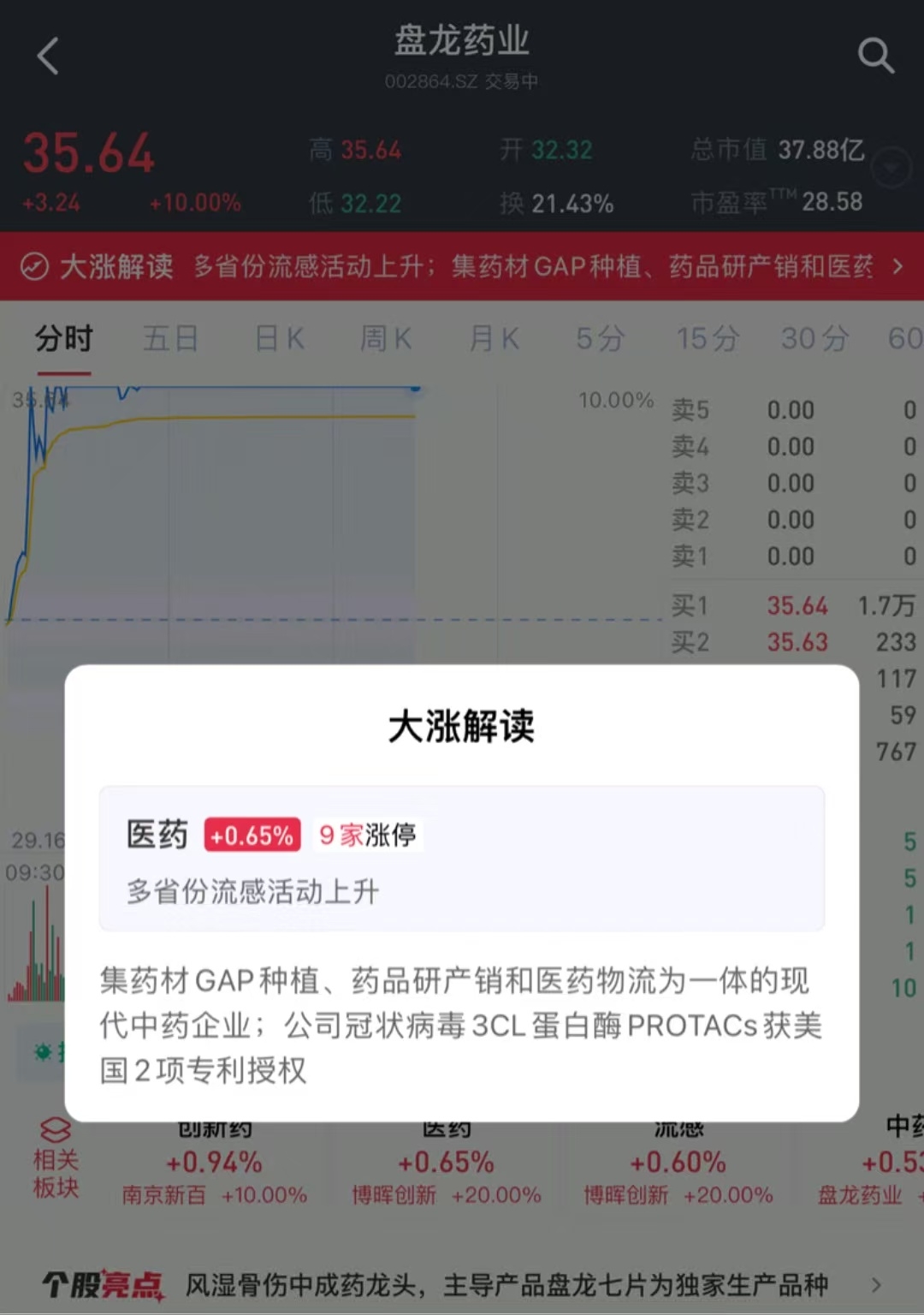 $盘龙药业(SZ002864)$ $众生药业(SZ002317)$ $药易购(SZ300937)$ 盘龙药业:30多元的票,尾盘万手哥都还有12000多手封单,相当于10多元票的30000多手了,漂亮换手后,明天锁仓一字加速,之前分享的众生药业也封死涨停,恭喜大伙!