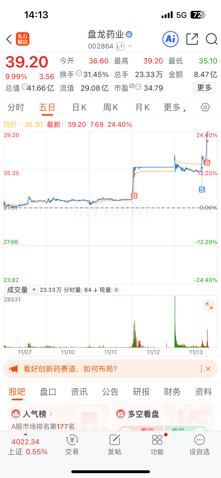 $盘龙药业(SZ002864)$ 内心承受能力再强点就好了,选一只股就要一直爱它