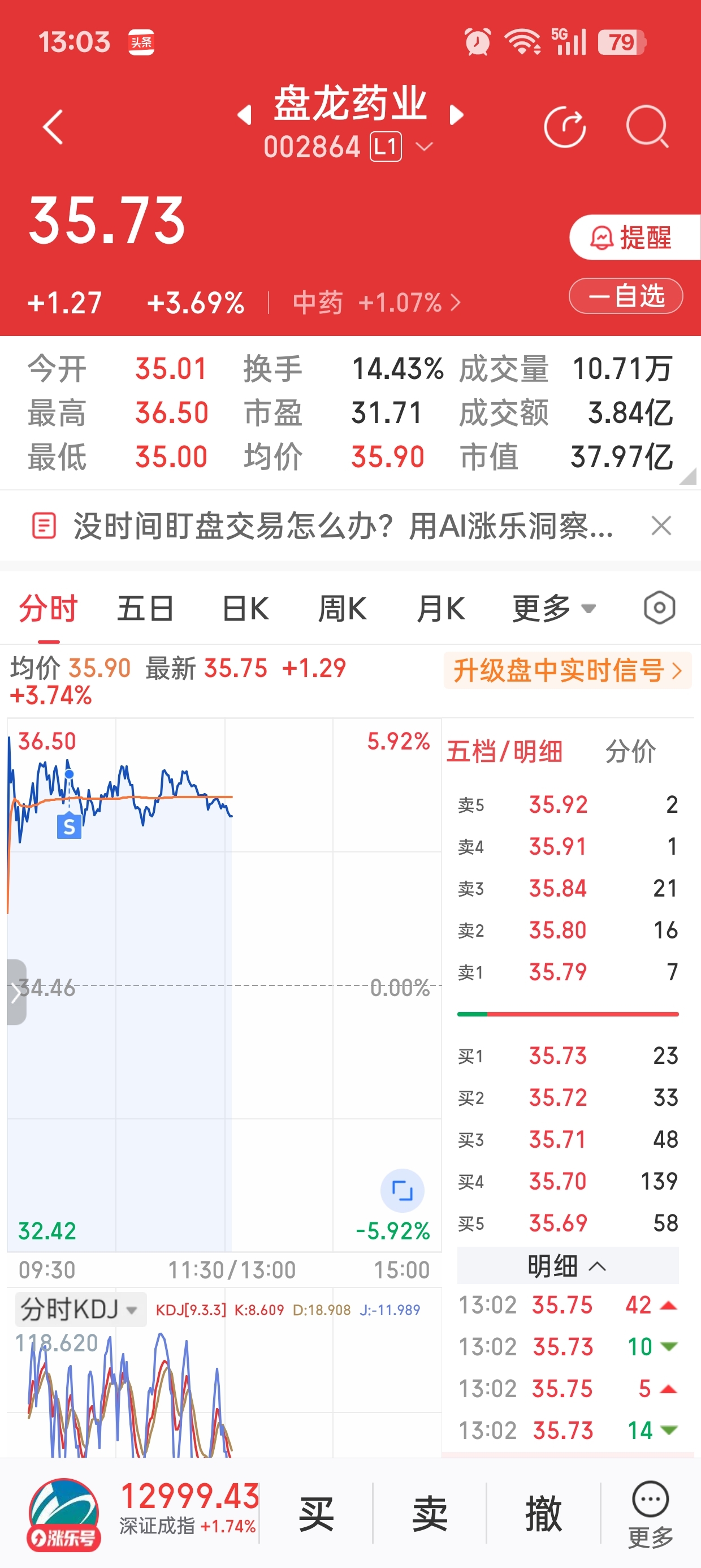 $盘龙药业(SZ002864)$ 赶紧跌下来