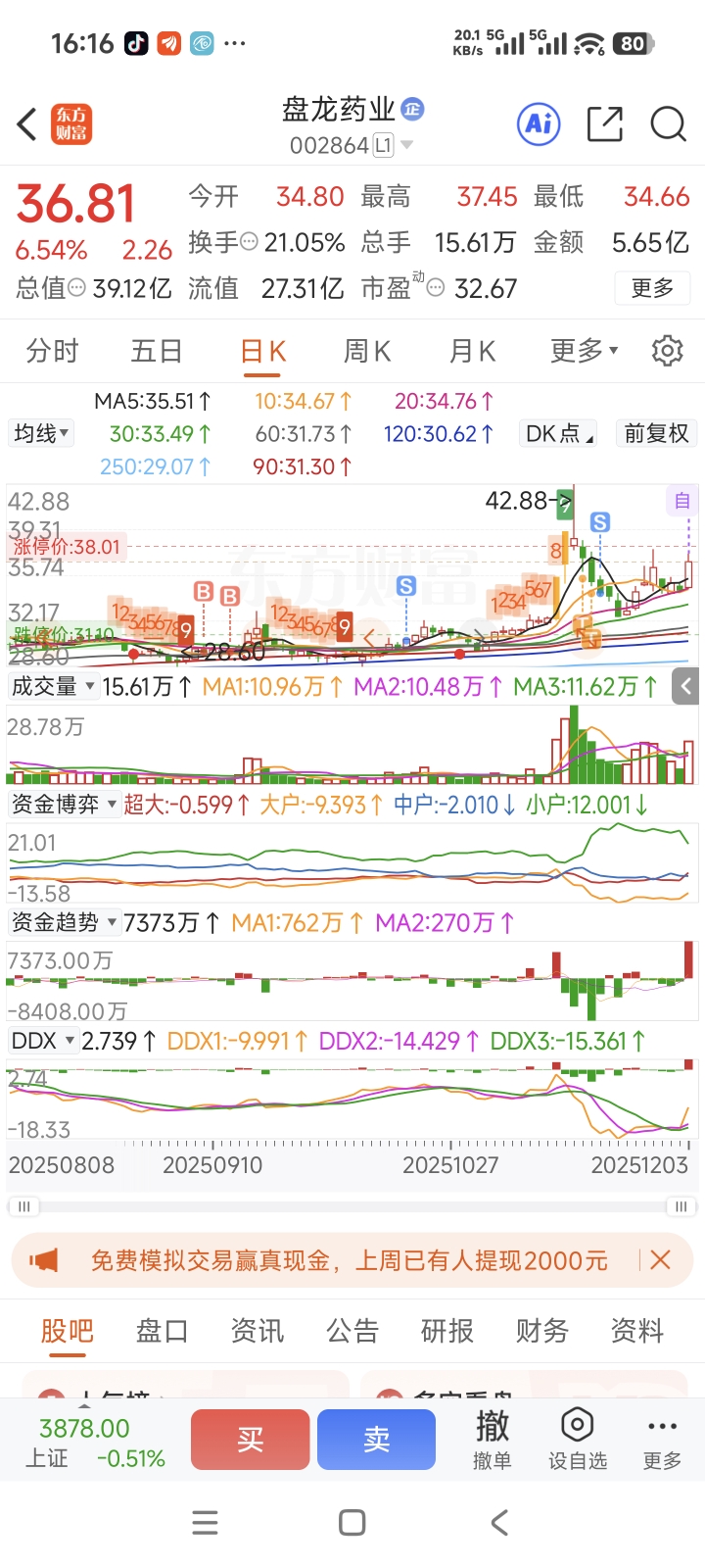 $盘龙药业(SZ002864)$ 怎么办,被洗了