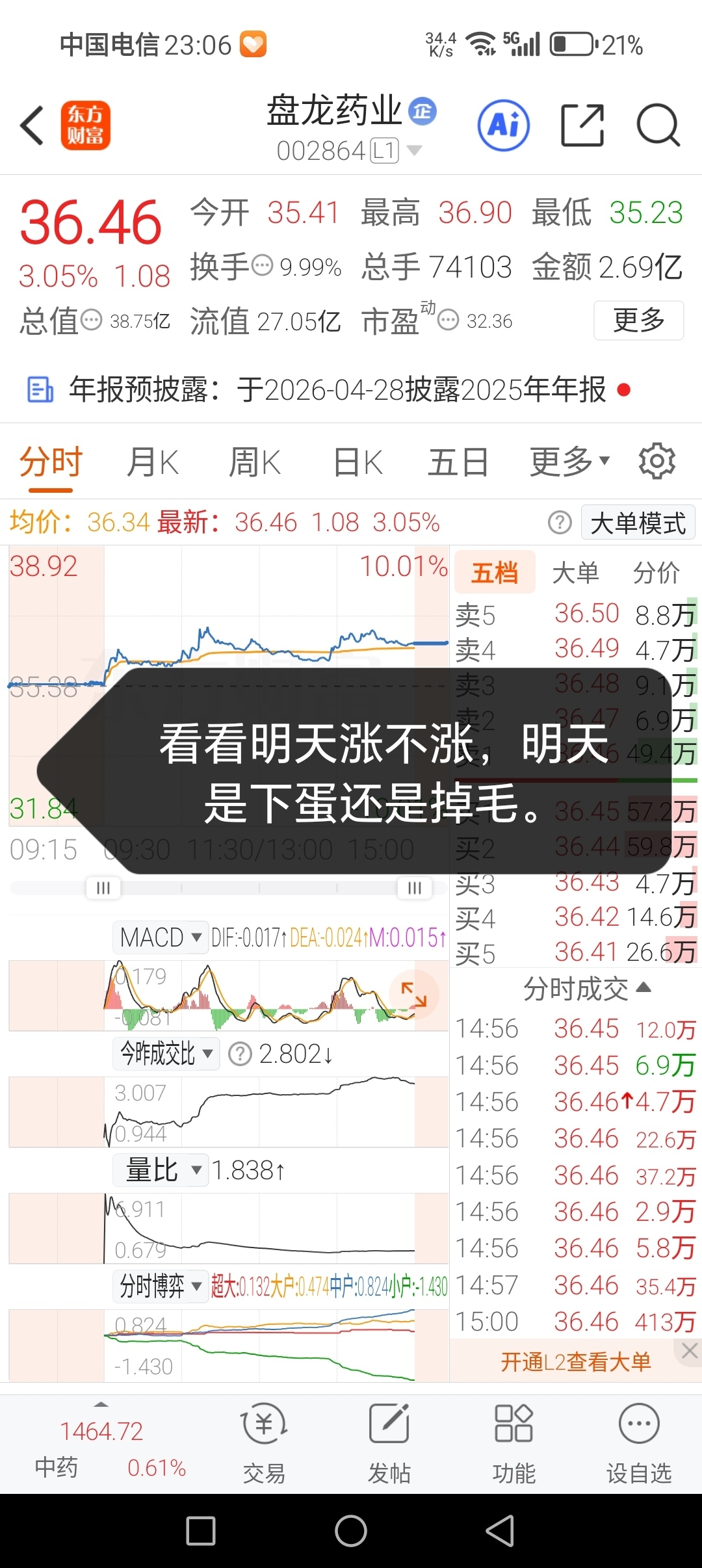 $盘龙药业(SZ002864)$