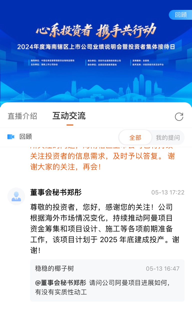 5月年报回复阿曼项目一切顺利进行,9月董秘就改口,四个月在阿曼建了一个厕所没有?