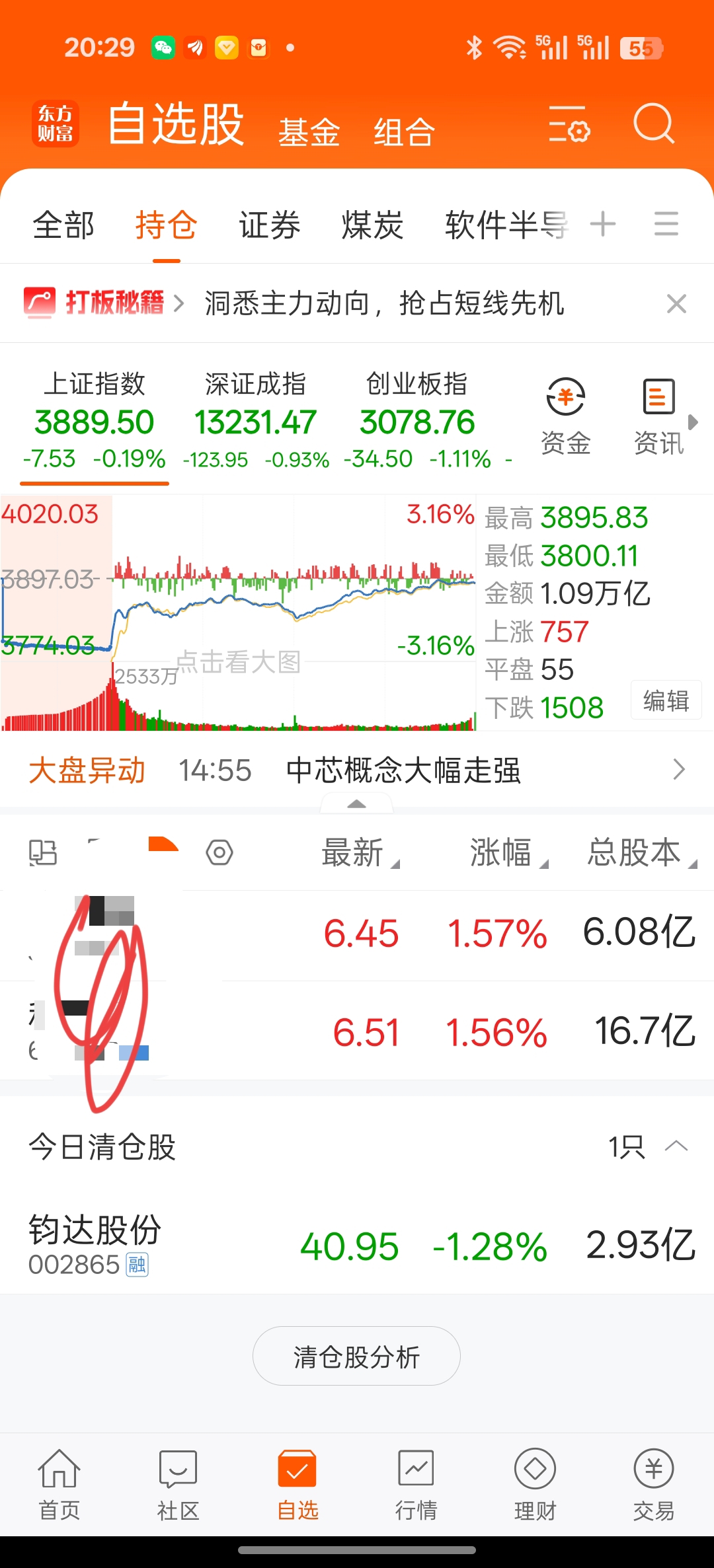 $钧达股份(SZ002865)$ 上一波336抄底48卖赚五万,这次42抄底亏六千,今天清仓,看来这个票不能玩了,兄弟们保重,我先撤了