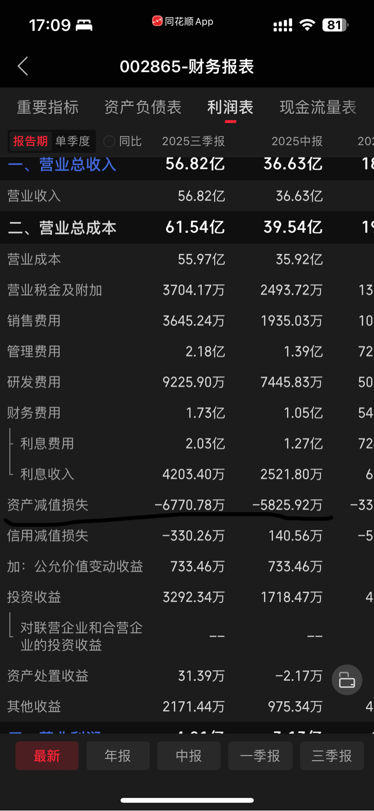 中报减值损失5800万,三季报6700万,一季报减值3300万,所以三季度单季度