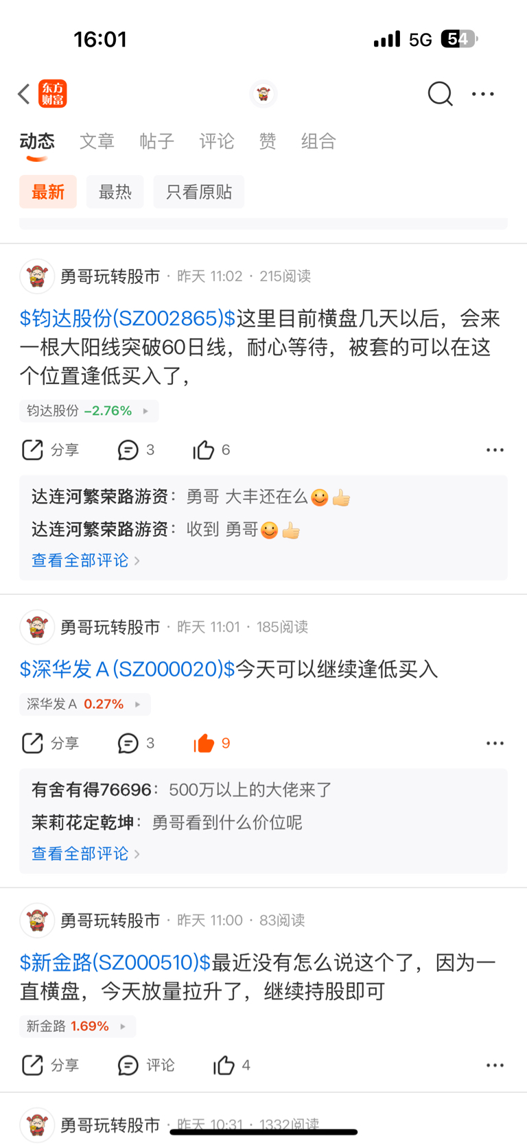 $钧达股份(SZ002865)$ 昨天说了,接下来可以逢低买入加仓,今天是个不错的加仓机会,明天如果还有低点也是可以逢低买入的,等突破左边的小平台,站上60日线,就会开始加速行情,应该快了