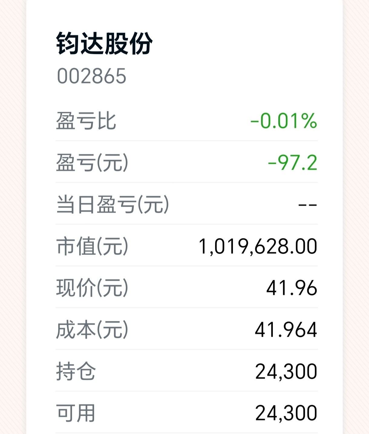 $钧达股份(SZ002865)$ 今日清掉st熊猫, 尾盘进来钧达