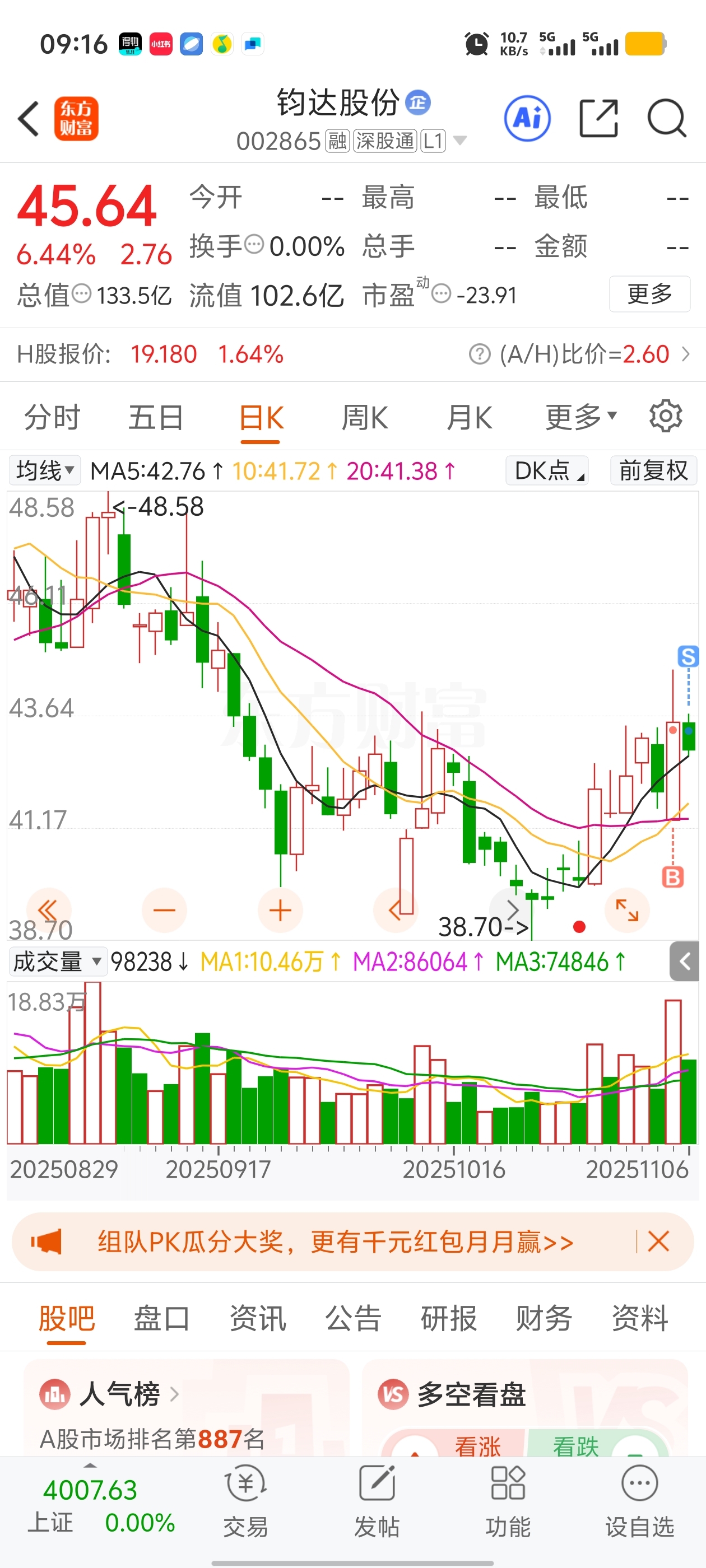 $钧达股份(SZ002865)$ #炒股日记# 别这样,我很难受