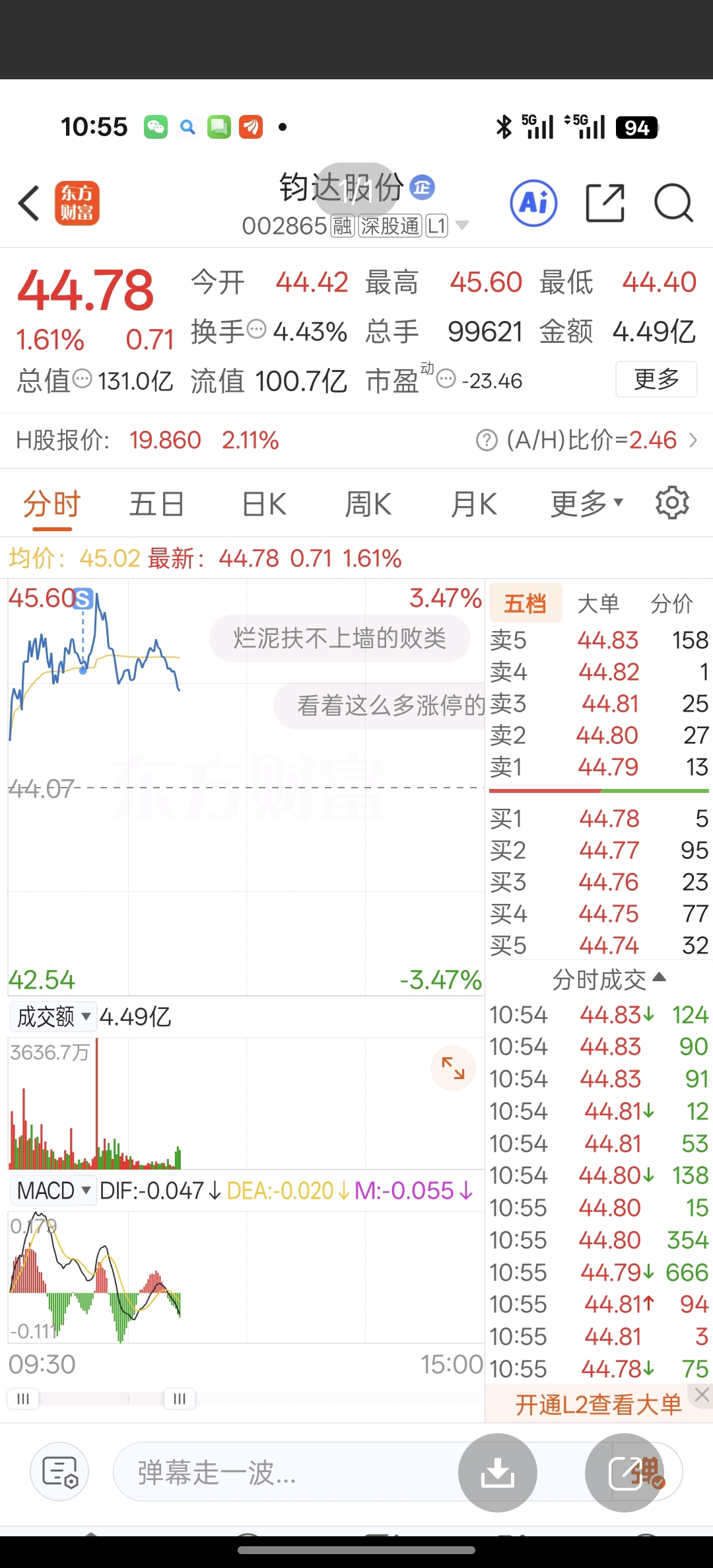 $钧达股份(SZ002865)$ 昨天卖对了,天天卖