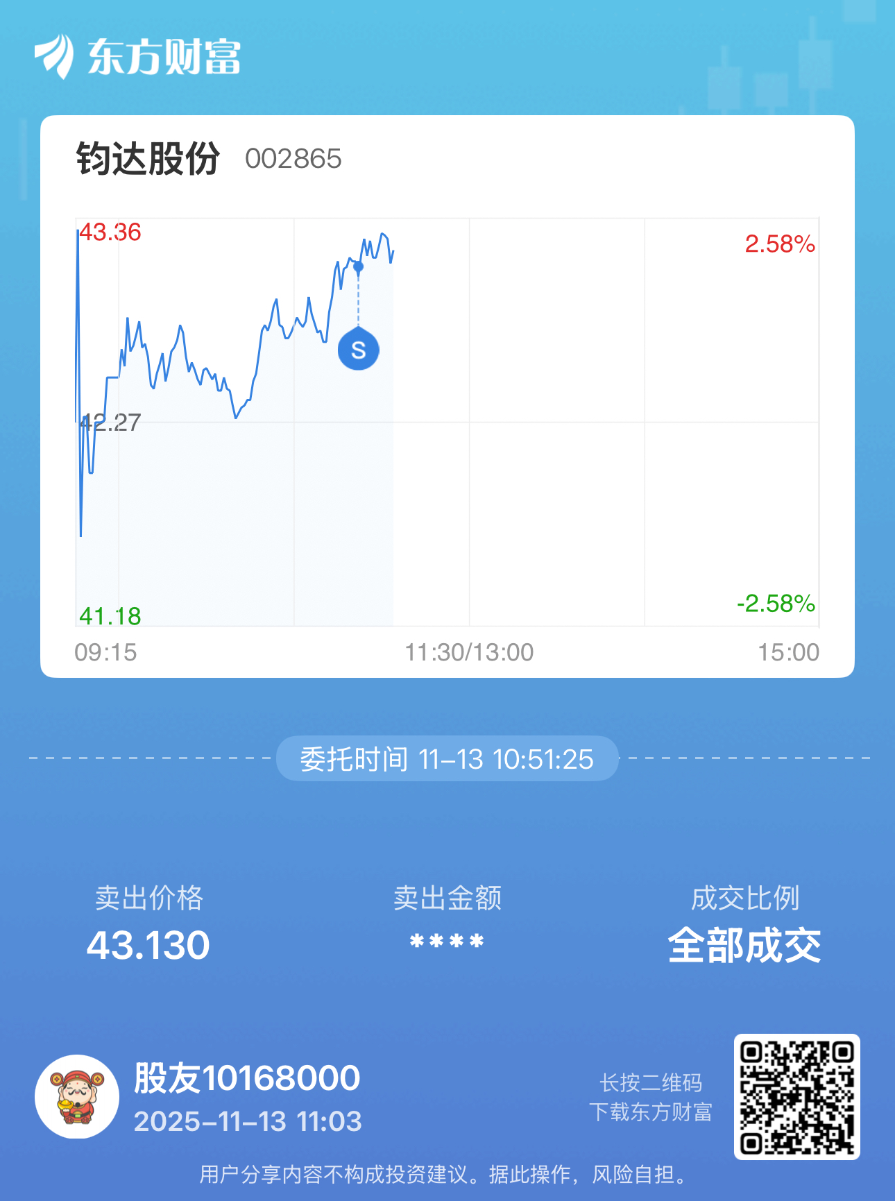 $钧达股份(SZ002865)$ 我卖了,主力可以拉升了