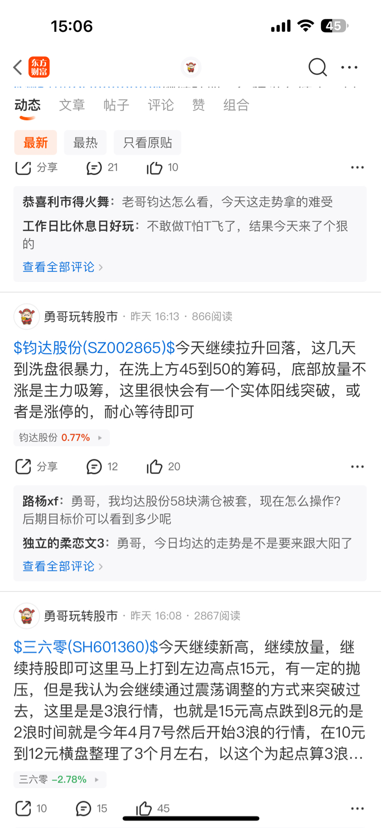 $钧达股份(SZ002865)$ 今天继续冲高回落,这种洗盘手法很容易洗掉很多不坚定的筹码,这里已经差不多了 明天后天很大概率就会一根大阳线拉升起来,不排除有涨停