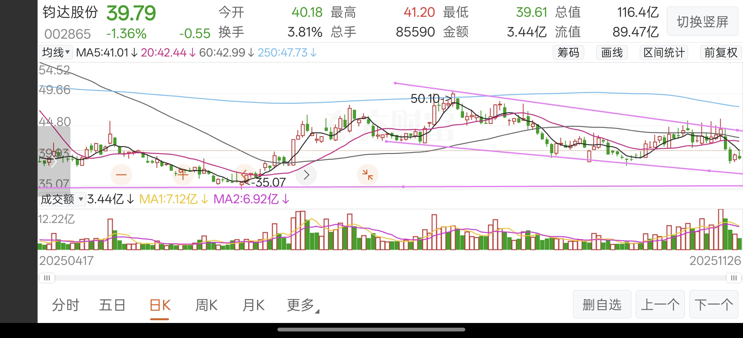 $钧达股份(SZ002865)$ 继续回调36.5左右,韭菜一定管住手,刚进的先出来