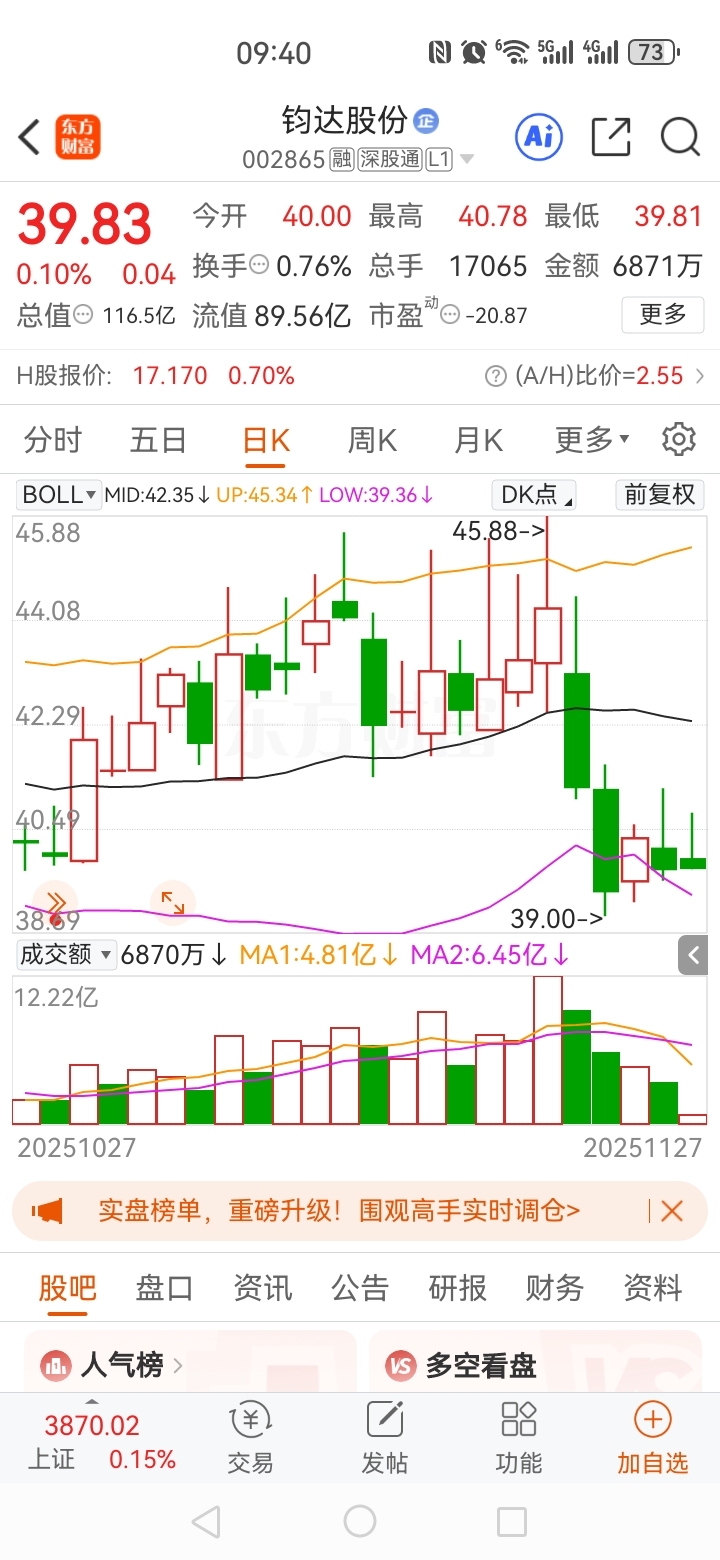 $钧达股份(SZ002865)$ 支撑很强劲,压力也很大,要么一飞冲天,翻倍,要么跌50%