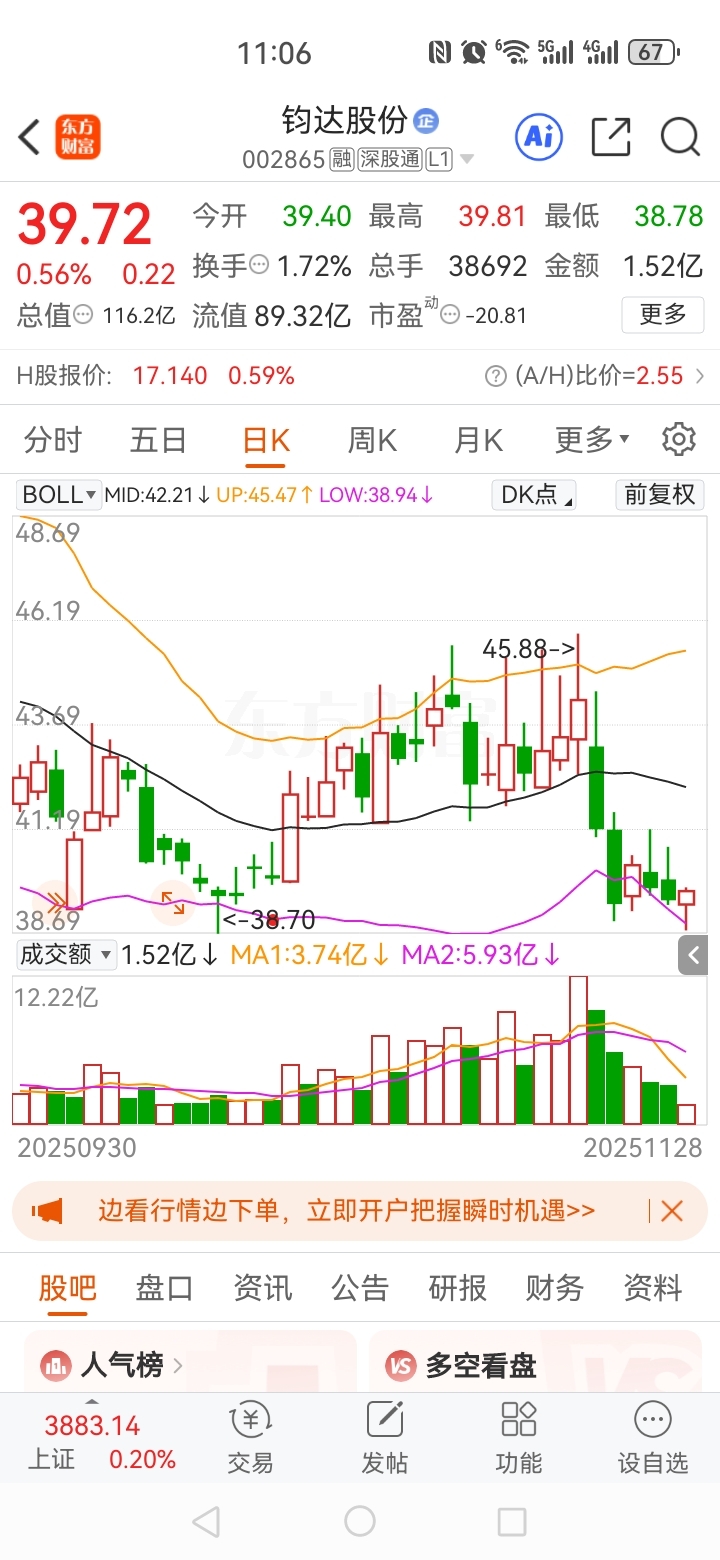 $钧达股份(SZ002865)$ 买吧,支撑还稳!!!拿着就好,黎明前的黑暗