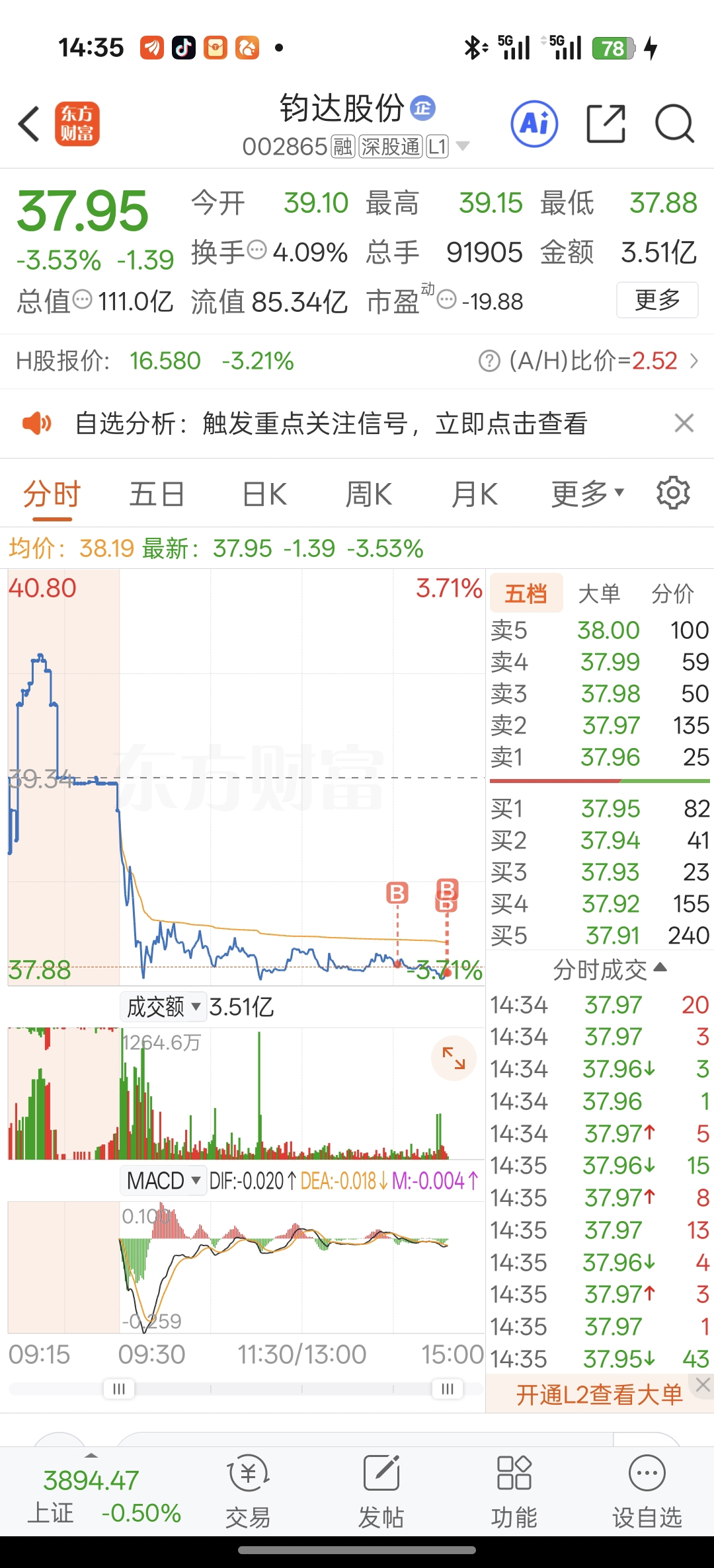 $钧达股份(SZ002865)$ 跟上吃大肉,分批建仓,主力耐我何,兄弟们加仓兄弟们加仓,千万别割肉