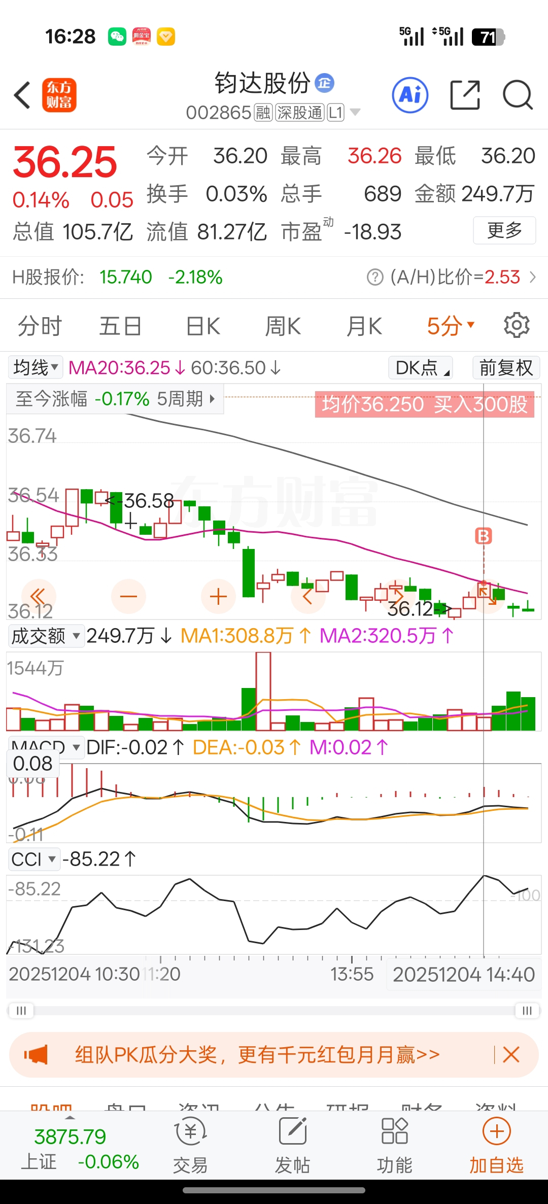 $钧达股份(SZ002865)$ 我来抄韭菜的底,涨两个点就卖,甩卖给散户盒子,