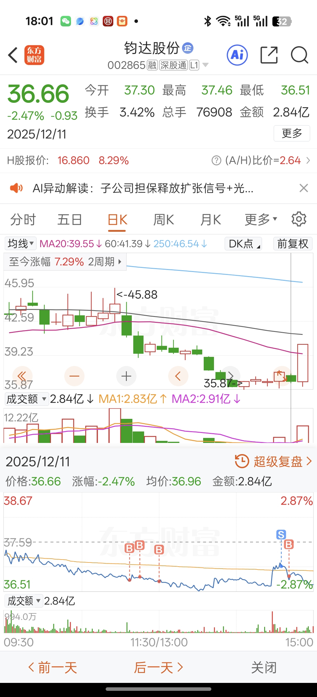 $钧达股份(SZ002865)$ 昨天全仓进,今天出