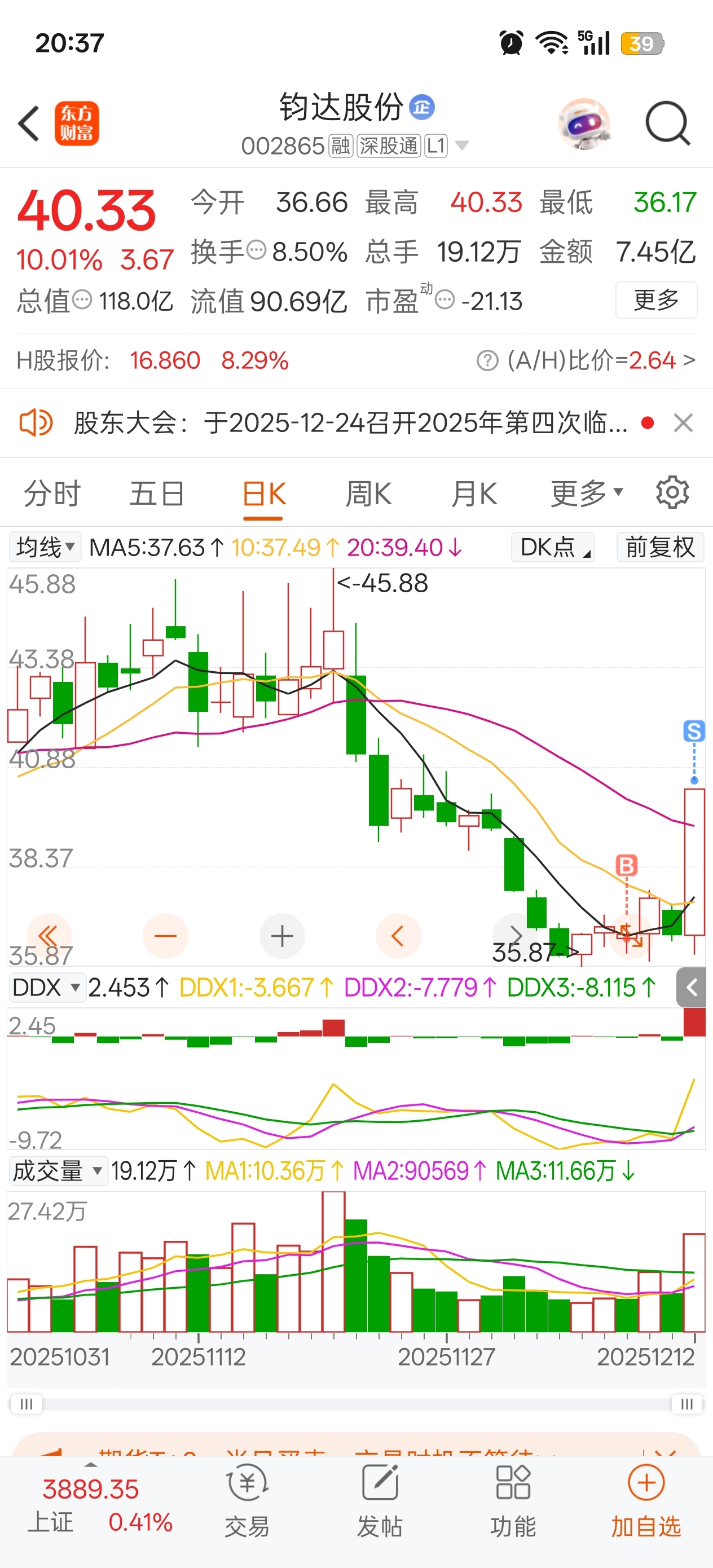 $钧达股份(SZ002865)$ 卖一半,留一半