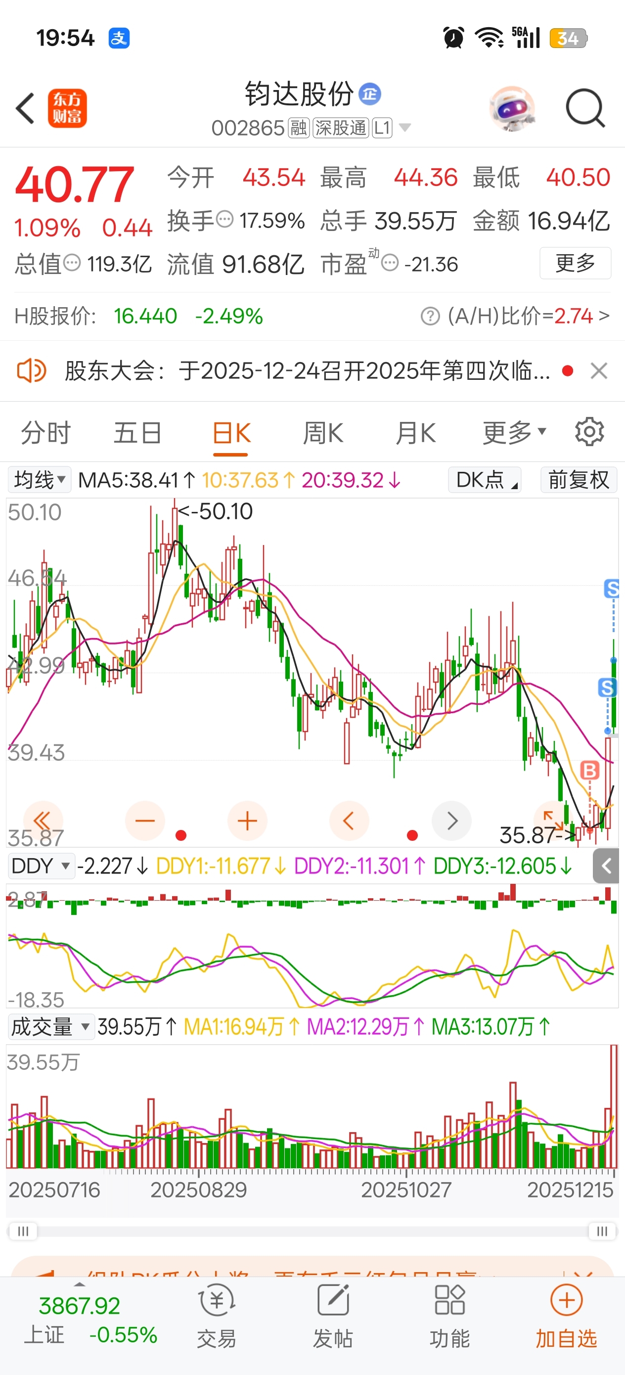 $钧达股份(SZ002865)$ 下个点位,5日线低吸