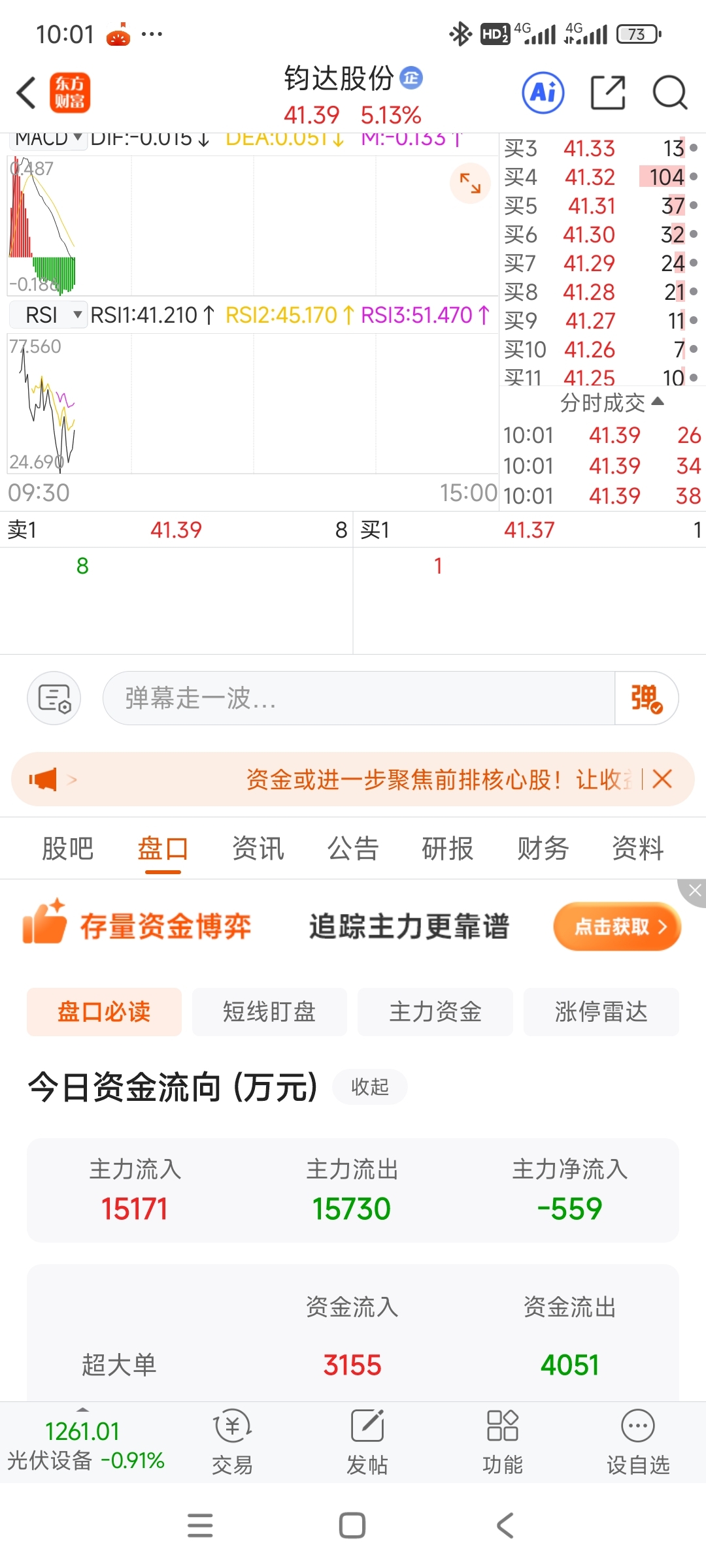 $钧达股份(SZ002865)$ 走了资金流出了