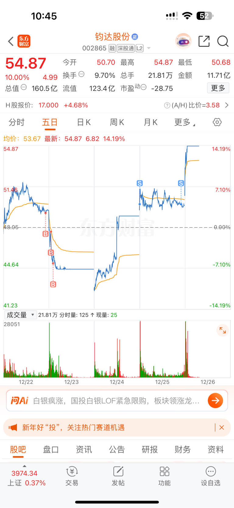 $钧达股份(SZ002865)$ 昨天卖了今天就涨停,