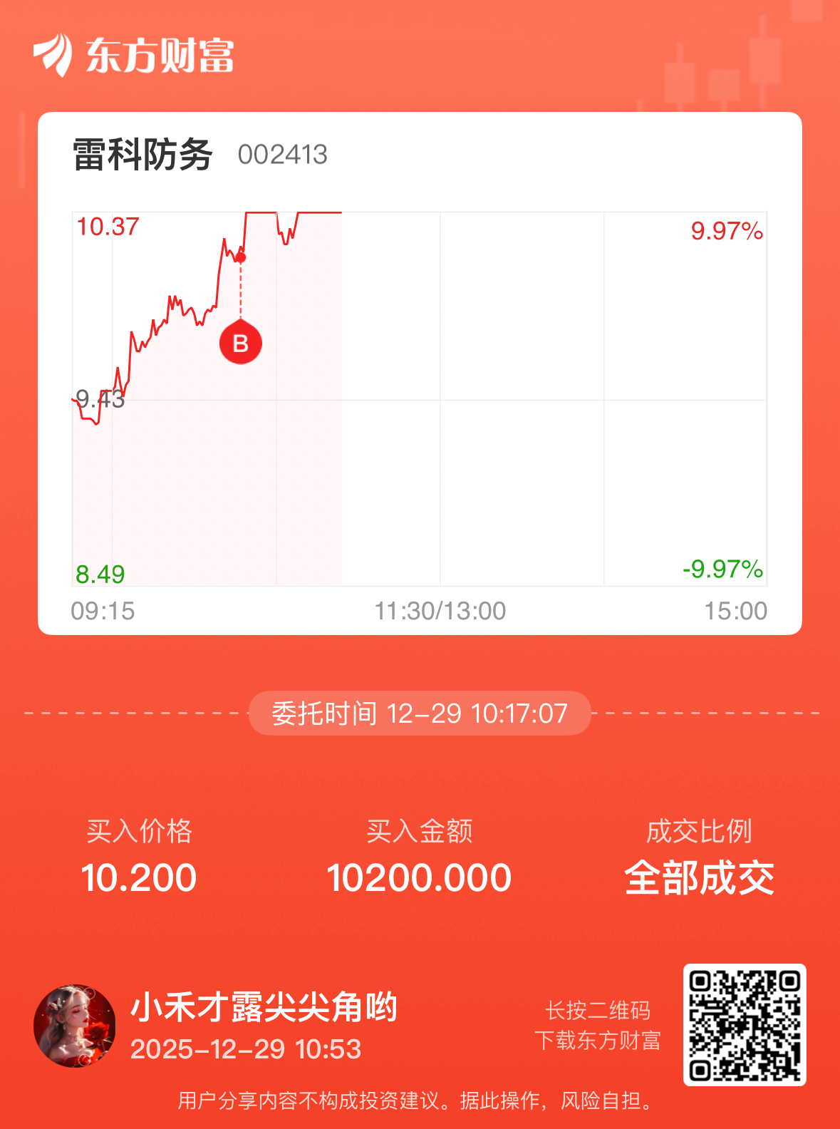 温馨提示: 1.根据《证券法》规定,禁止编造、传播虚假信息或者误导性信息,扰乱证券市场;2.用户在本社区发表的所有资料、言论等仅代表个人观点,与本网站立场无关,不对您构成任何投资建议。用户应基于自己的独立判断,自行决定证券投资并承担相应风险。《东方财富社区管理规定》