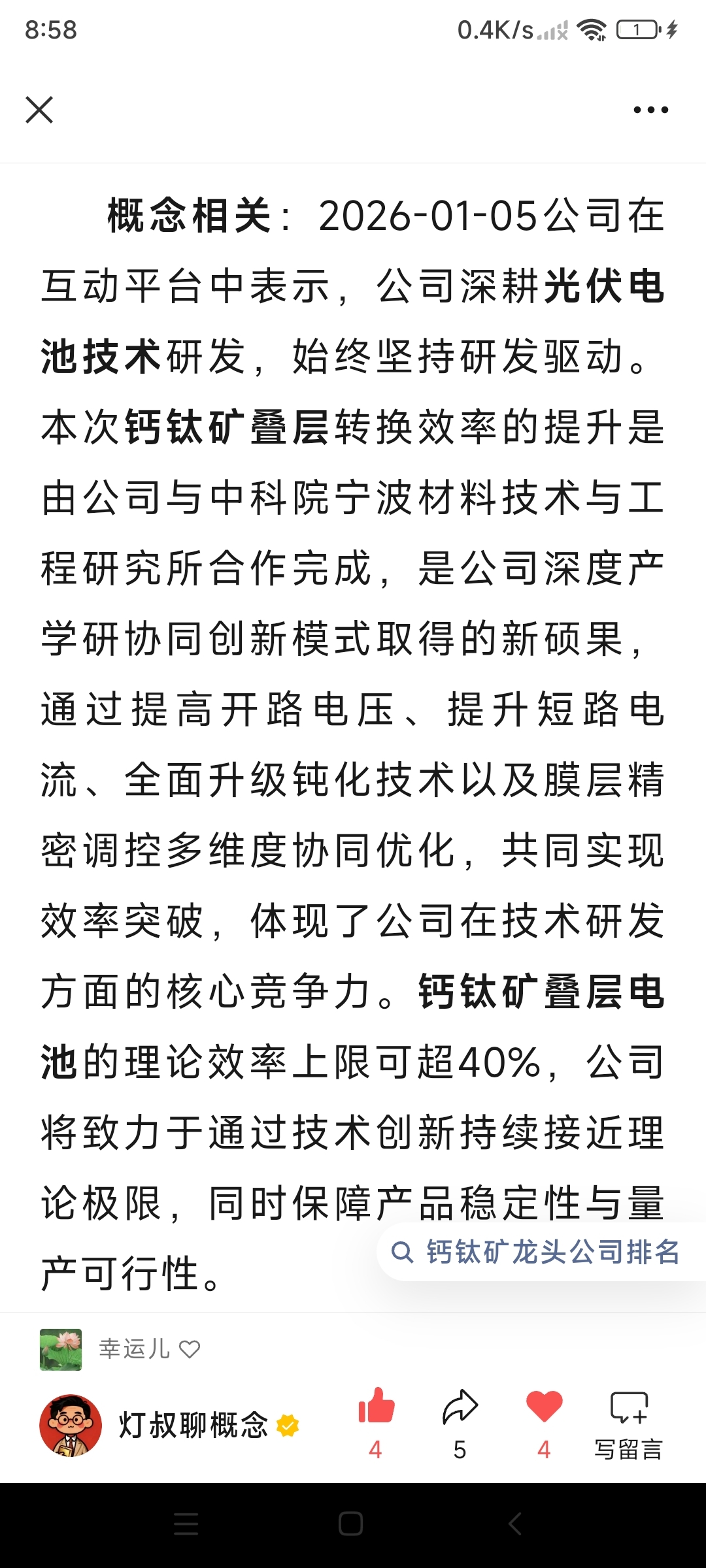 钙钛矿电池概念炒作