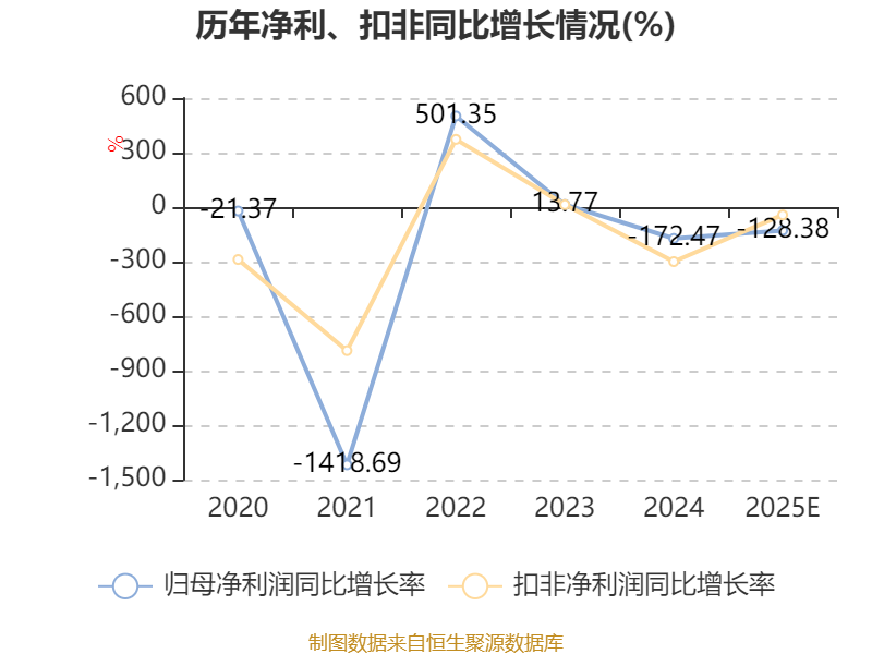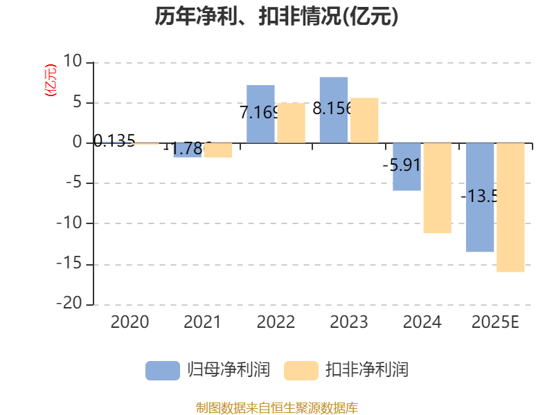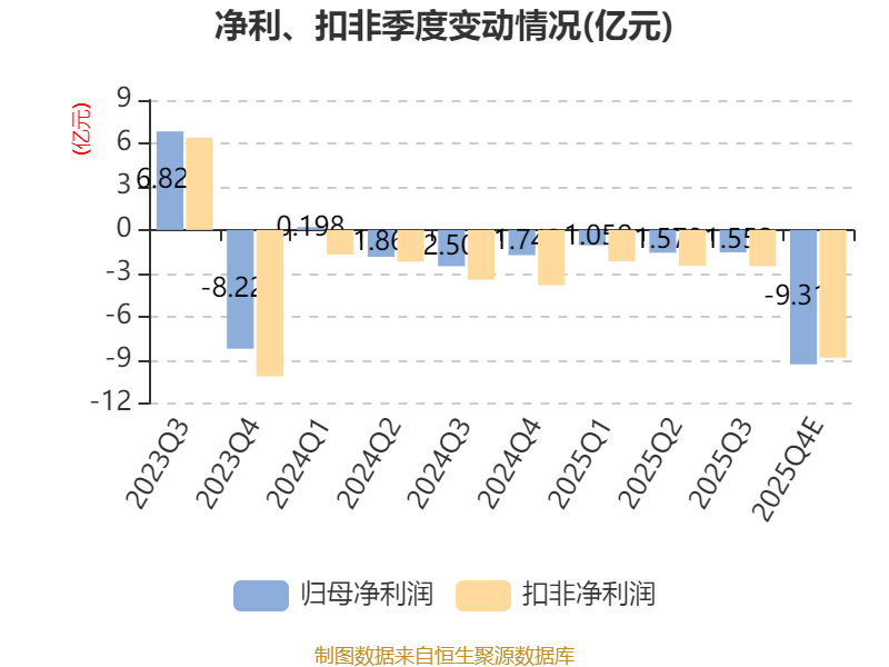 中证智能财讯钧达股份(002865)1月16日晚间披露2025年度业绩预告,预计2025年归母净利润亏损12亿元至15亿元,上年同期亏损5.91亿元;扣非净利润亏损14亿元至18亿元,上年同期亏损11.18亿元;基本每股收益-4.54元/股至-5.67元/股。以最新收盘价计算,市净率(LF)约5.64倍,市销率(TTM)约3.53倍。