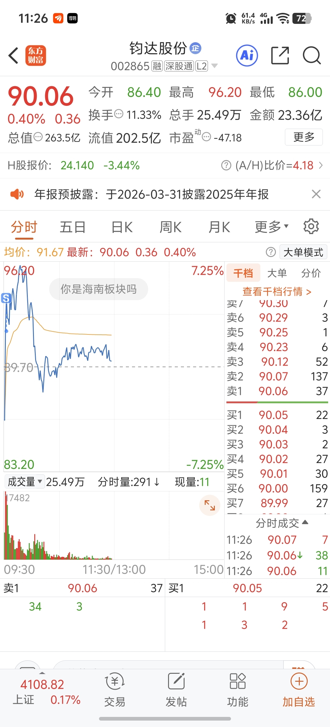 $钧达股份(SZ002865)$ 这个股挺有规矩的,涨一天就2跟上影线。