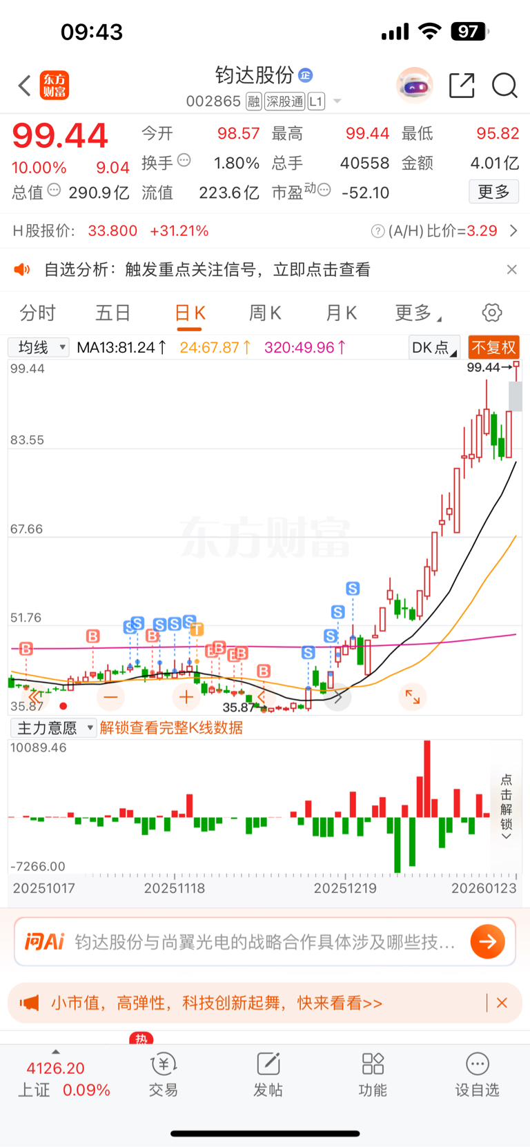 $钧达股份(SZ002865)$ 拿不住
