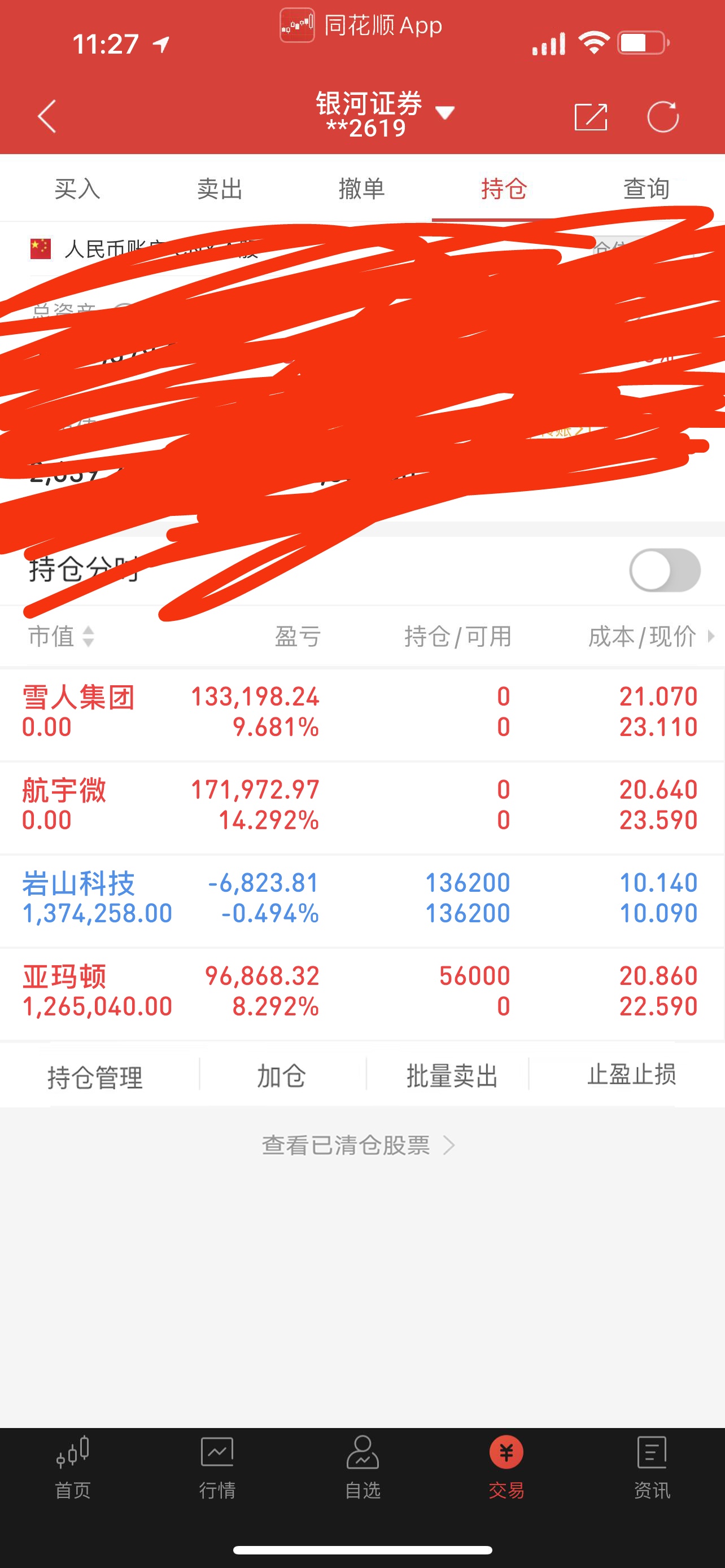 早上给雪人集团和航宇微给止盈出局了,航宇微还不错到手14cm