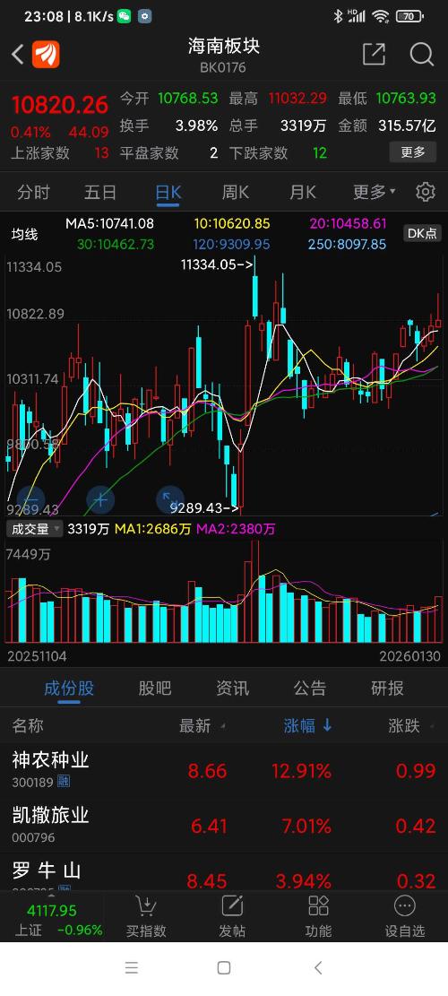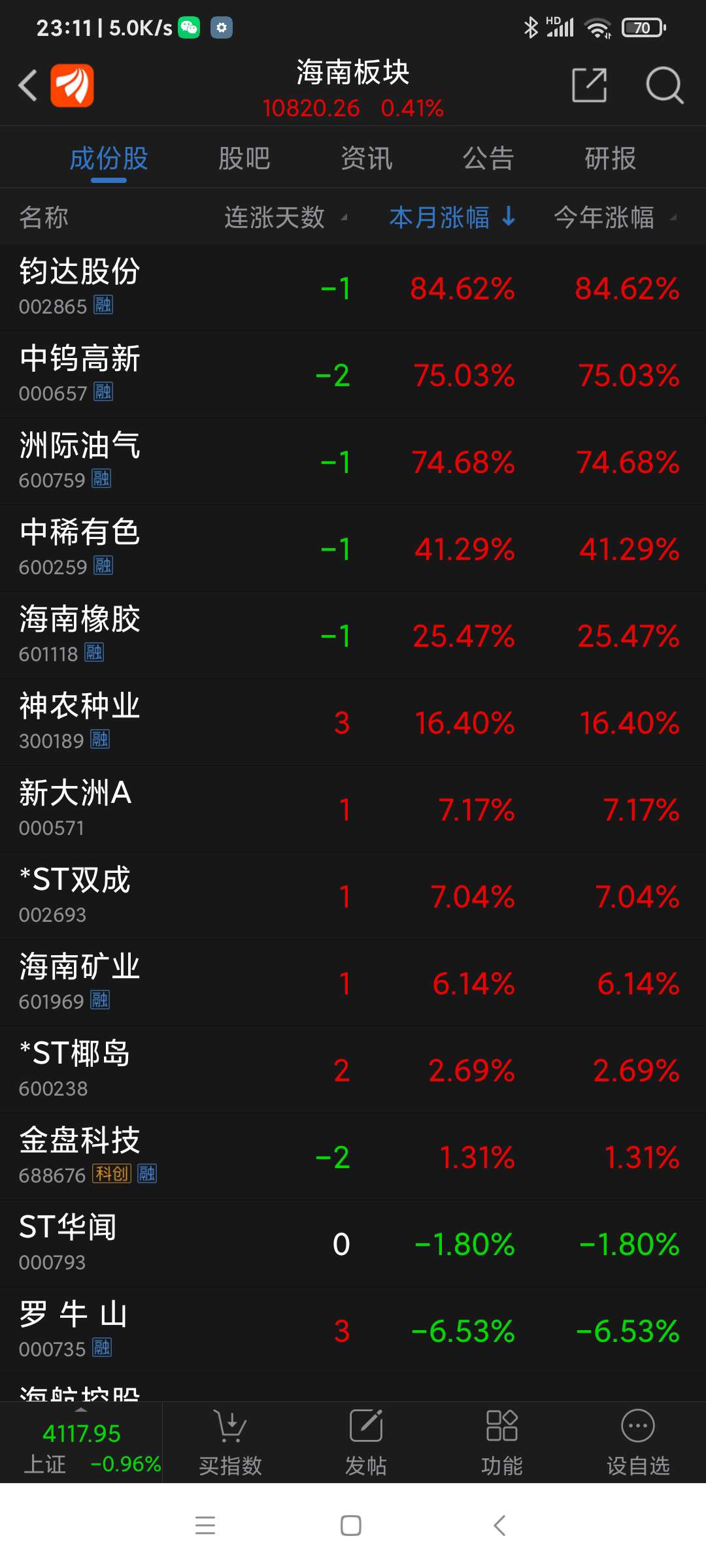 海南板块26年元月涨幅4.03%,钧达股份名列海南板块(共有27个股票)涨幅第一名。