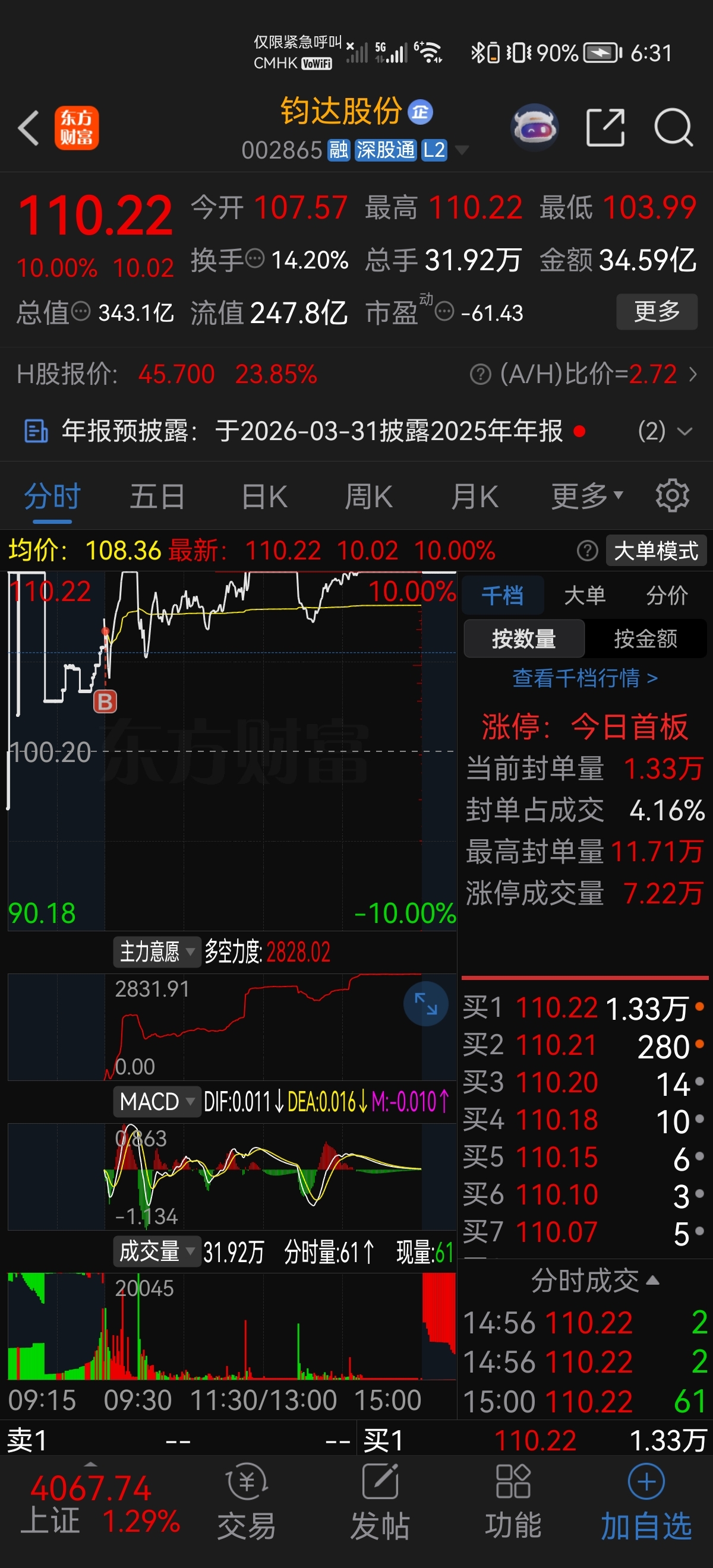 $钧达股份(SZ002865)$ #复盘记录# 一早就选了你,磨磨唧唧走烂板,好在最后封板了。