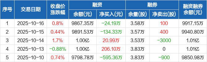 周大生:融资净偿还24.19万元,融资余额9867.35万元(10-16)