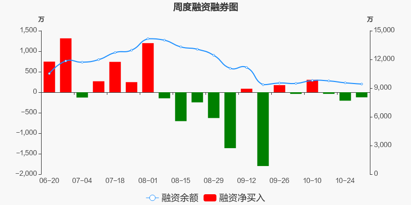 周大生本周(2025/10/27-2025/10/31)累计涨幅达1.47%,截至10月31日最新股价报收13.84元。从增量上来看,10月27日至10月30日融资买入交易规模4449.98万元,融资偿还规模4573.41万元,期内融资净偿还123.43万元。从存量上来看,截止11月2日,周大生融资融券余额9557.44万元,其中融资余额规模9430.39万元,融券余额规模127.05万元。
