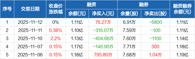 周大生:融资净买入76.27万元,融资余额1.11亿元(11-12)