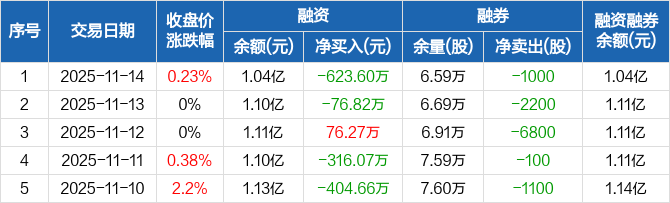 周大生:融资净偿还623.6万元,融资余额1.04亿元(11-14)