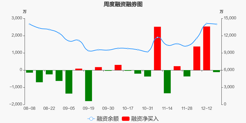 周大生本周(2025/12/15-2025/12/19)累计涨幅达2.26%,截至12月19日最新股价报收12.22元。从增量上来看,12月15日至12月18日融资买入交易规模2677.24万元,融资偿还规模2792.75万元,期内融资净偿还115.52万元。从存量上来看,截止12月21日,周大生融资融券余额1.4亿元,其中融资余额规模1.4亿元,融券余额规模14.05万元。