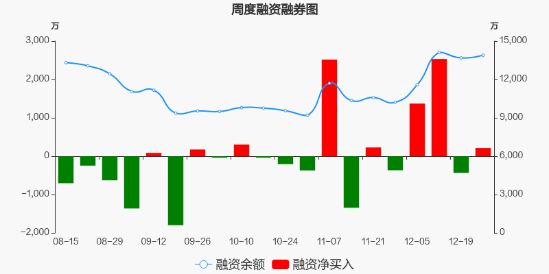 周大生本周(2025/12/22-2025/12/26)累计跌幅达0.08%,截至12月26日最新股价报收12.21元。从增量上来看,12月22日至12月25日融资买入交易规模2364.22万元,融资偿还规模2151.65万元,期内融资净买入212.57万元。从存量上来看,截止12月28日,周大生融资融券余额1.39亿元,其中融资余额规模1.39亿元,融券余额规模17.2万元。