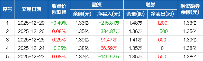 周大生:融资净偿还215.81万元,融资余额1.33亿元(12-29)