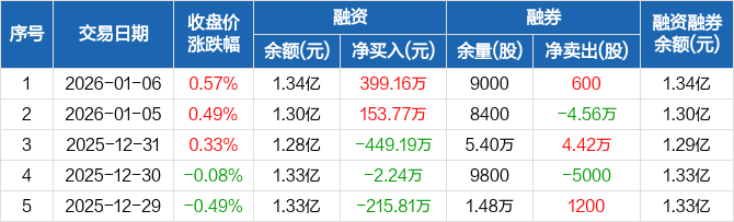 周大生:融资净买入399.16万元,融资余额1.34亿元(01-06)